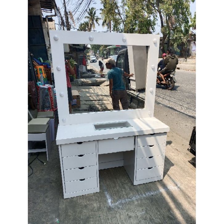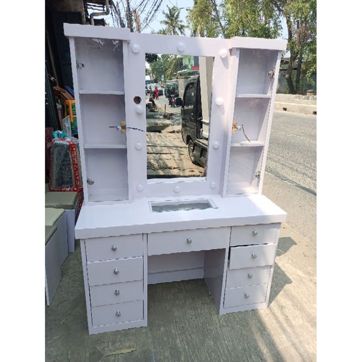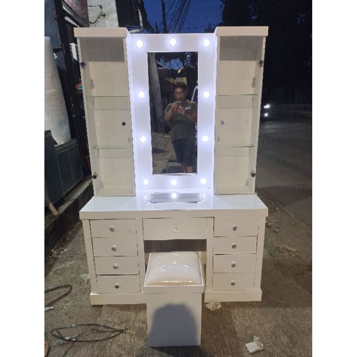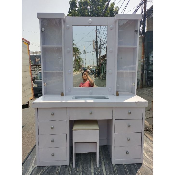 meja rias. tolet. lemari kaca cermin. lampu laci cermin pintu kaca kayu