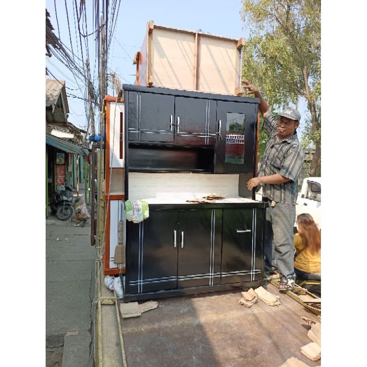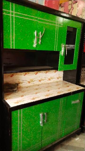 Rak piring lemari sayur pintu 3 sleding triplek ukuran p125xl45xt170
