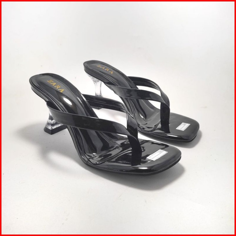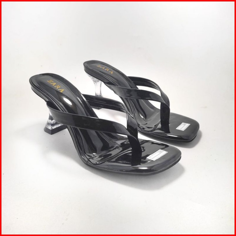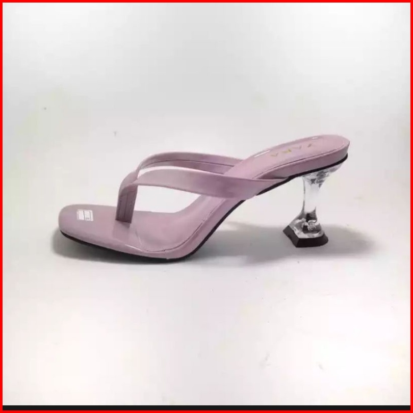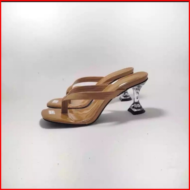 Amiq-sandals Heels Wanita Hak Kaca Jepit 7cm New Sendal Heels Tali Jepit Hak Kaca