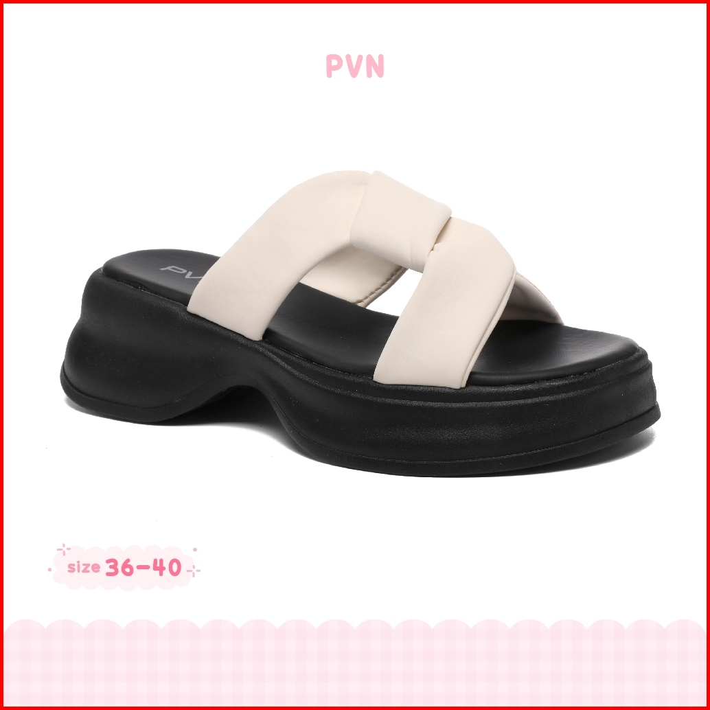 Pvn Nara Strap Sandal Wanita Cream Black 219