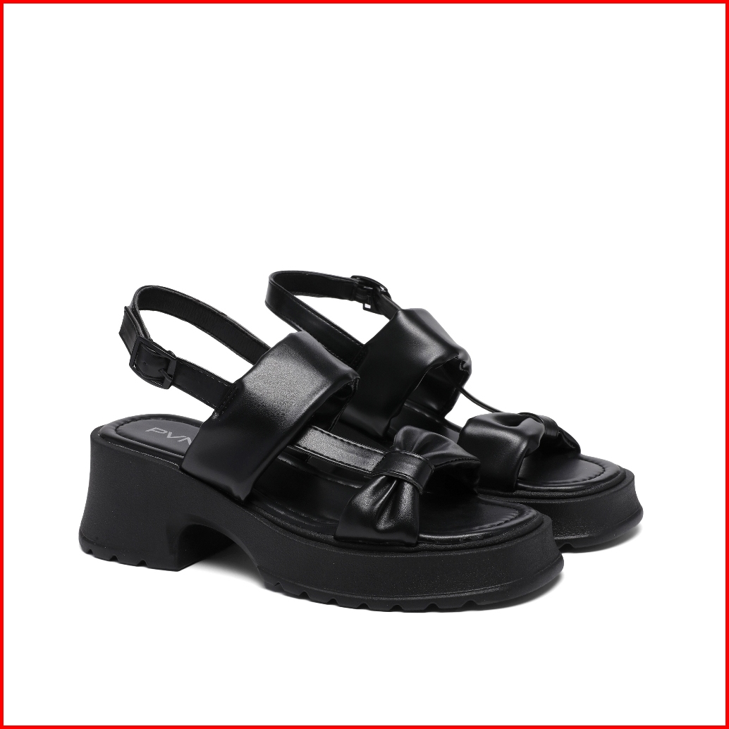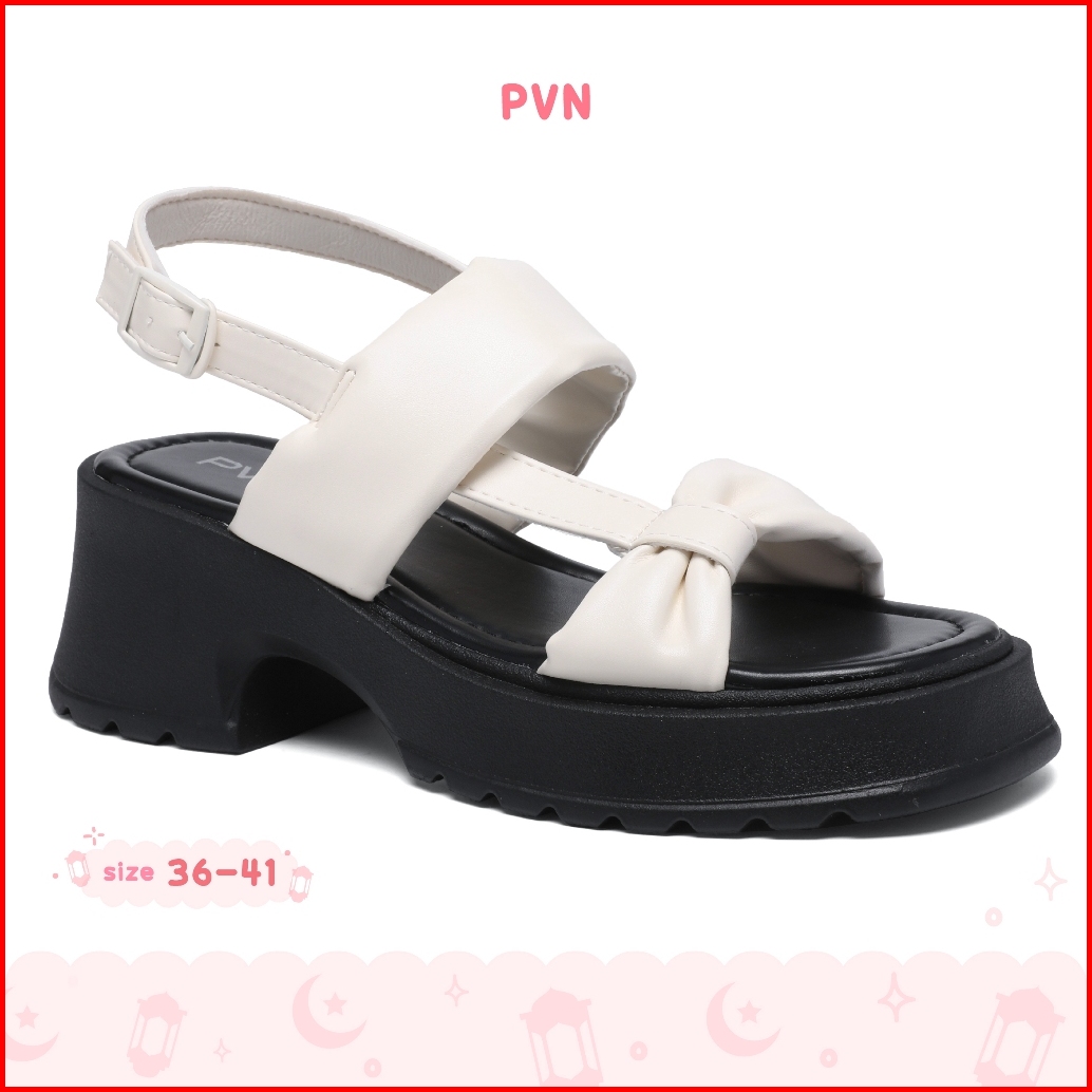 Pvn Luna Sandal Tali Wanita Hitam Krem 389