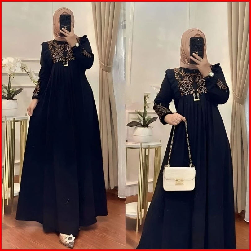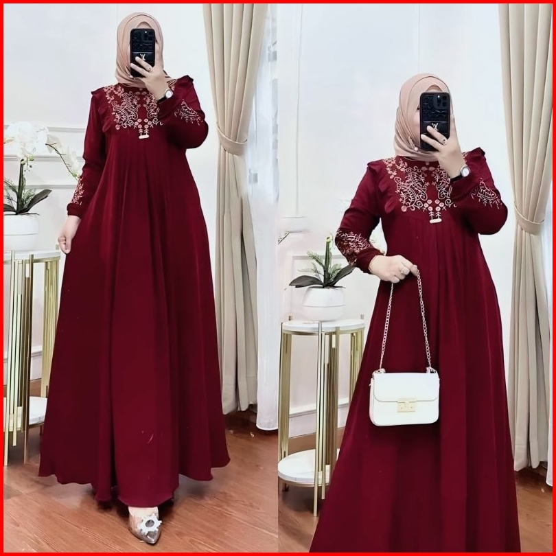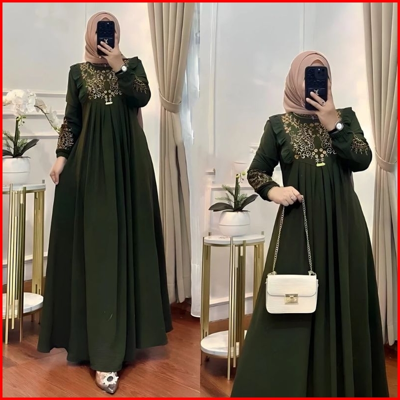 Termurah Gamis Terbaru Lunara Bordir Cringkle Dress Terlaris