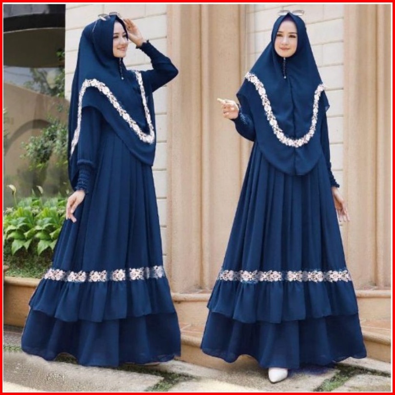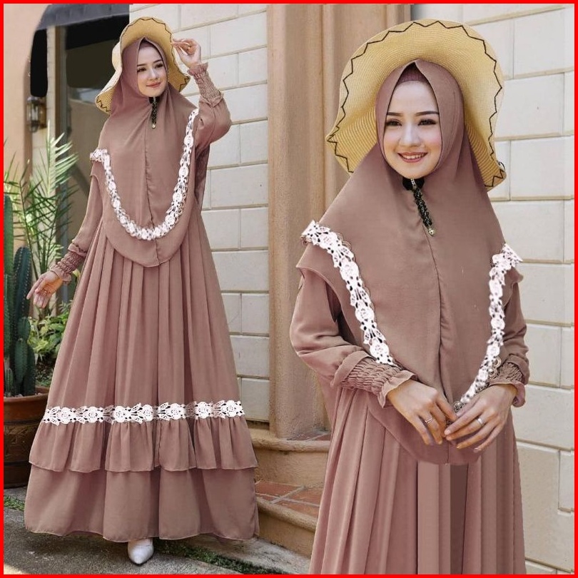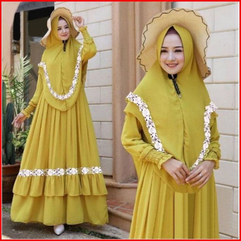 Gamis Syari Set Hijab Terbaru Jumbo Bahan Crinkle Airflow Mix Renda Pakaian Muslim Wanita