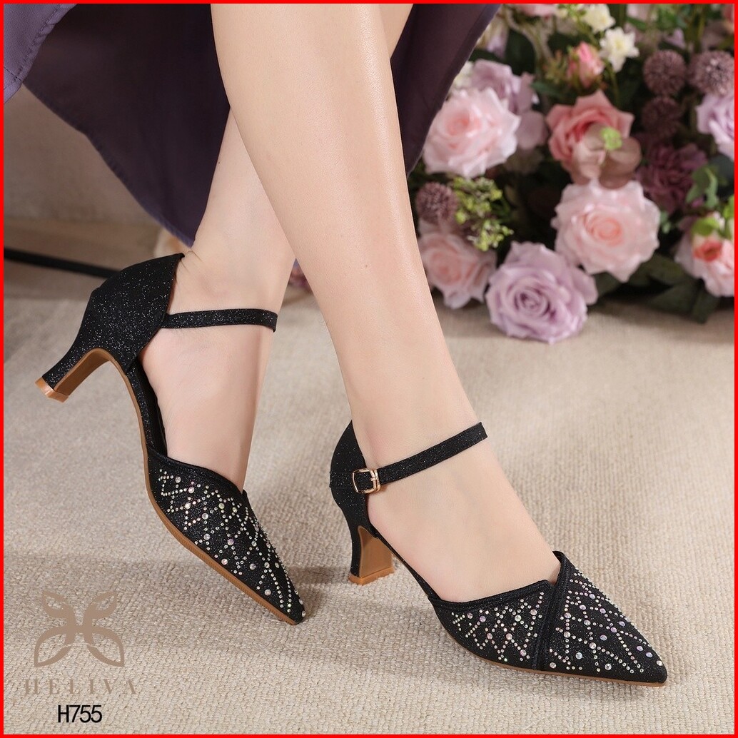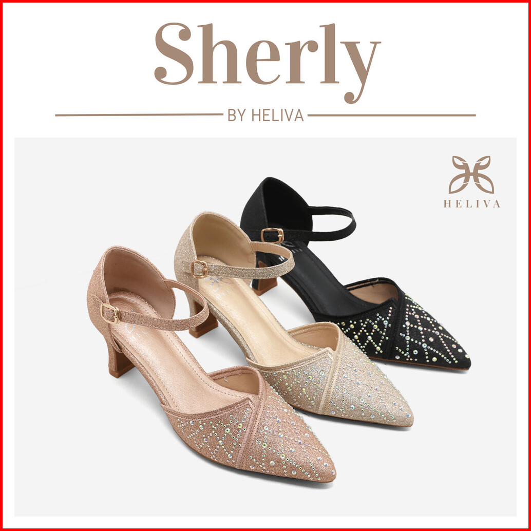 Heliva Sherly High Heels Pesta Wanita Tali Angkle Detail Payet Gliter Hak 6cm H755