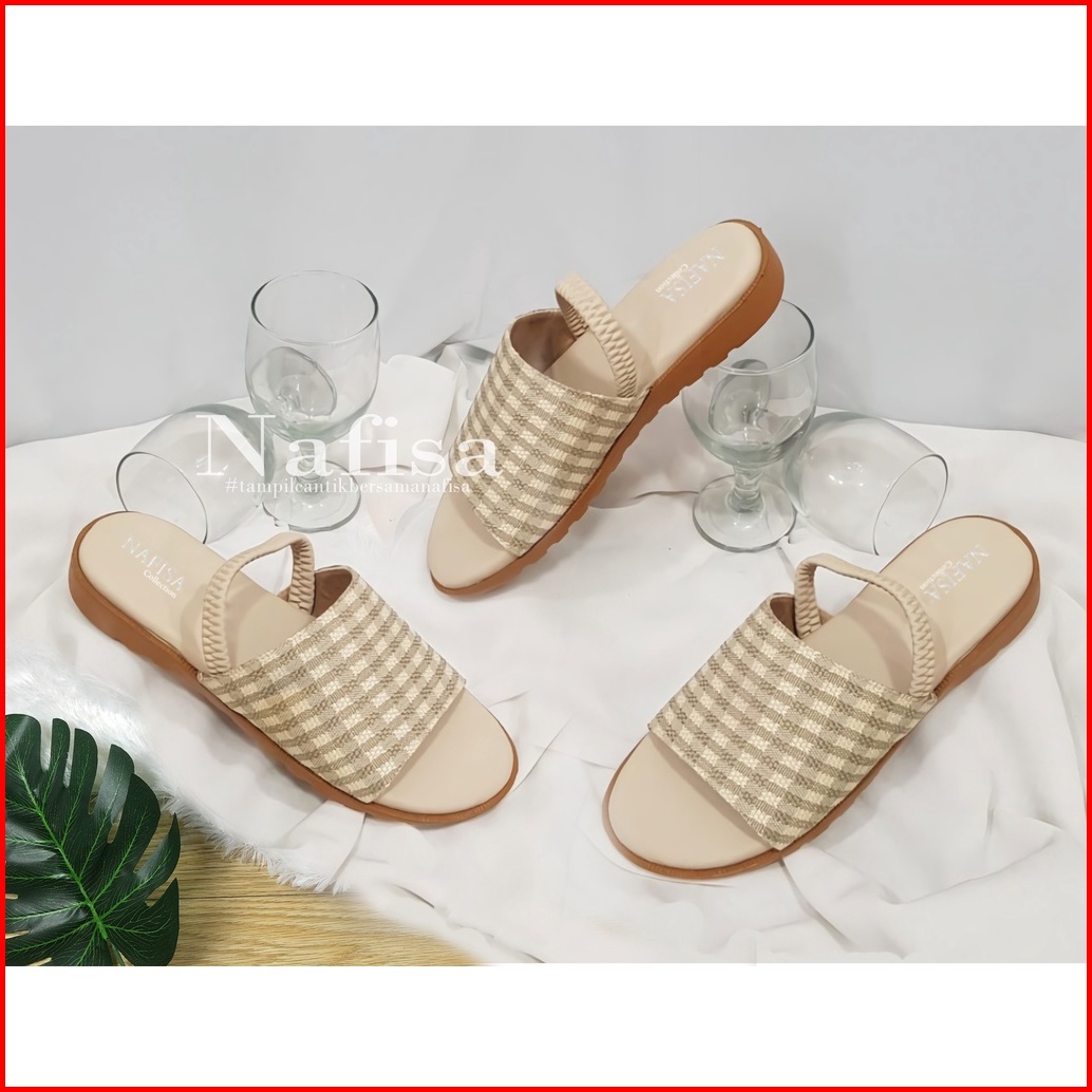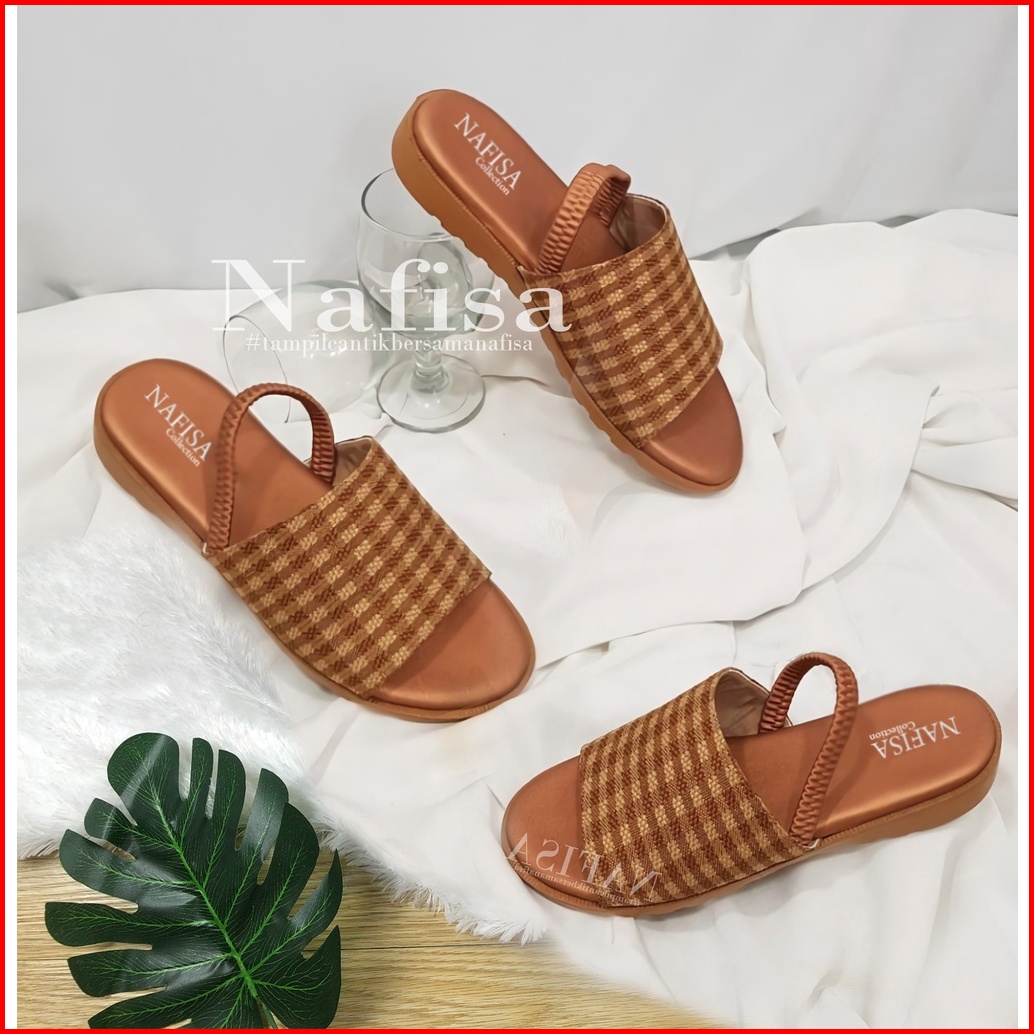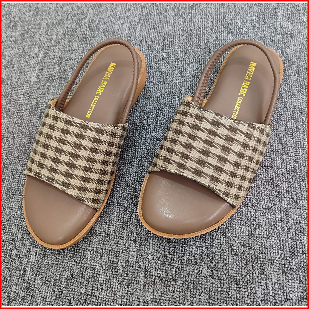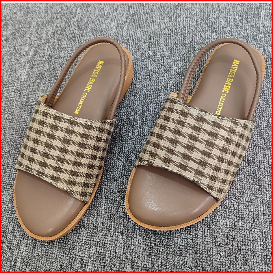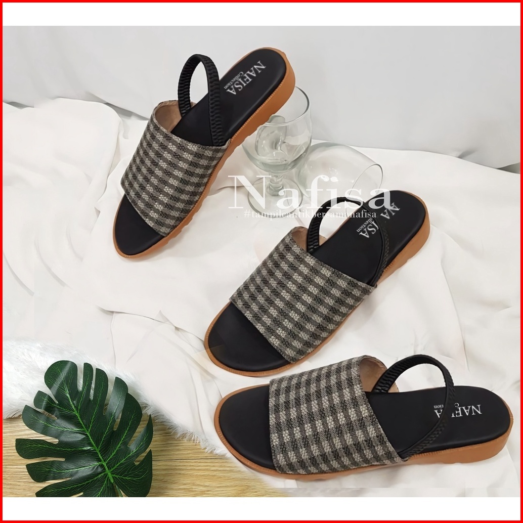 Sandal Wanita Empuk Sendal Tali Wanita Sandal Tali Belakang Motif Kotak Navisa Basic Sollection