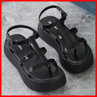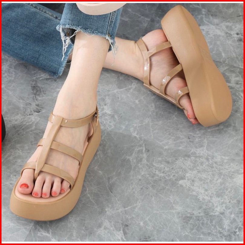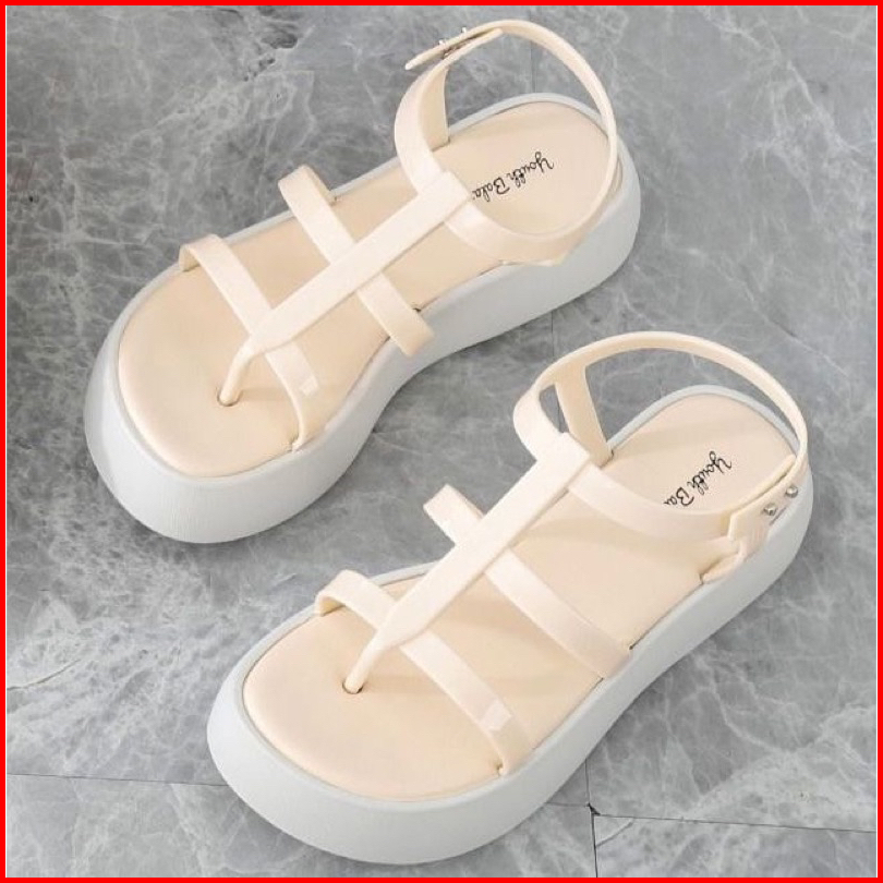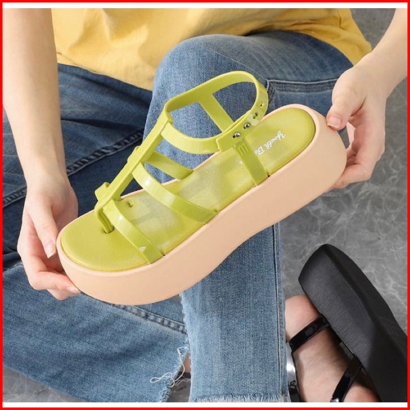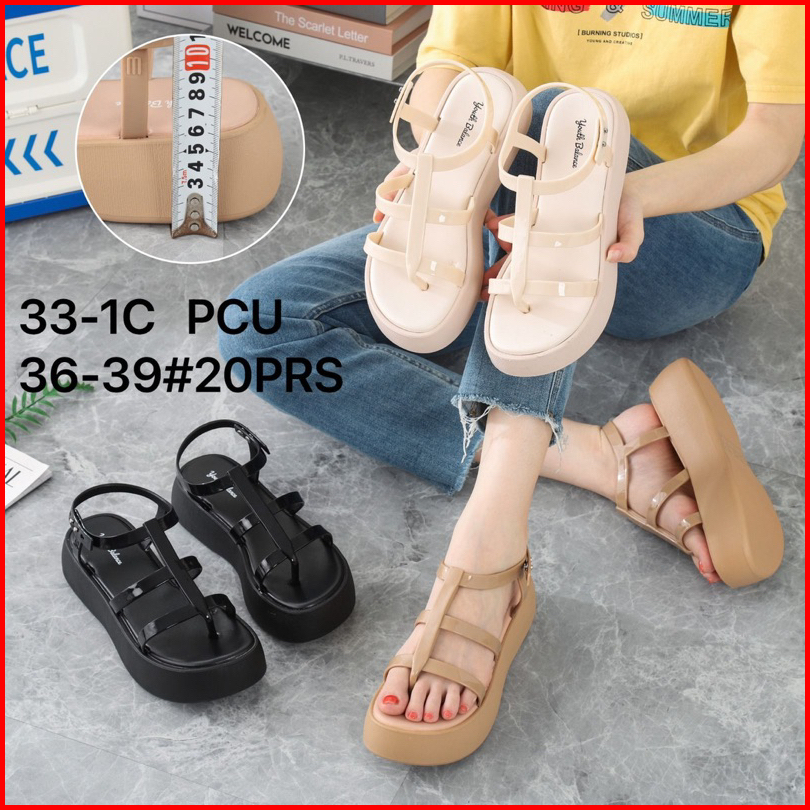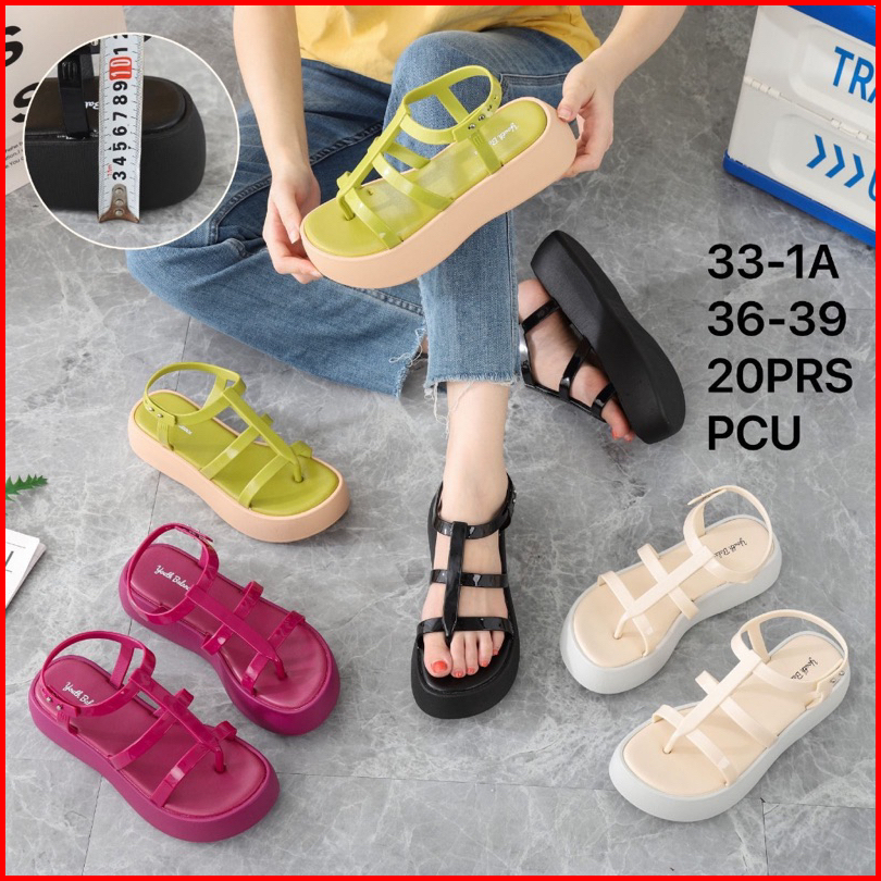 C Sandal Fashion 33-1a Rubber Slip On Tali Belakang Garis-garis Polos Import