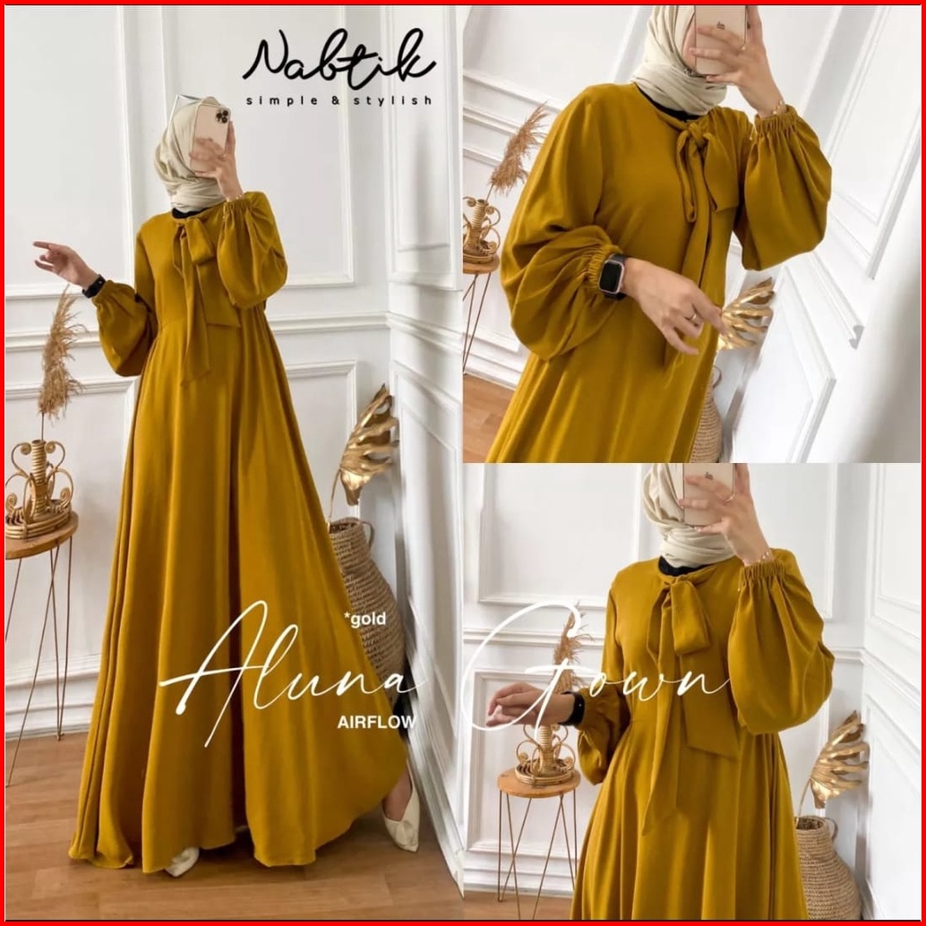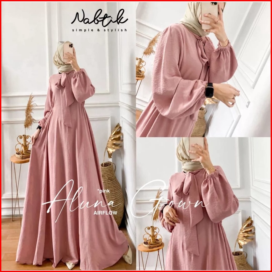 Gamis Aluna Terbaru Gamis Crinkle Airflow Gamis Lebaran
