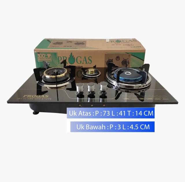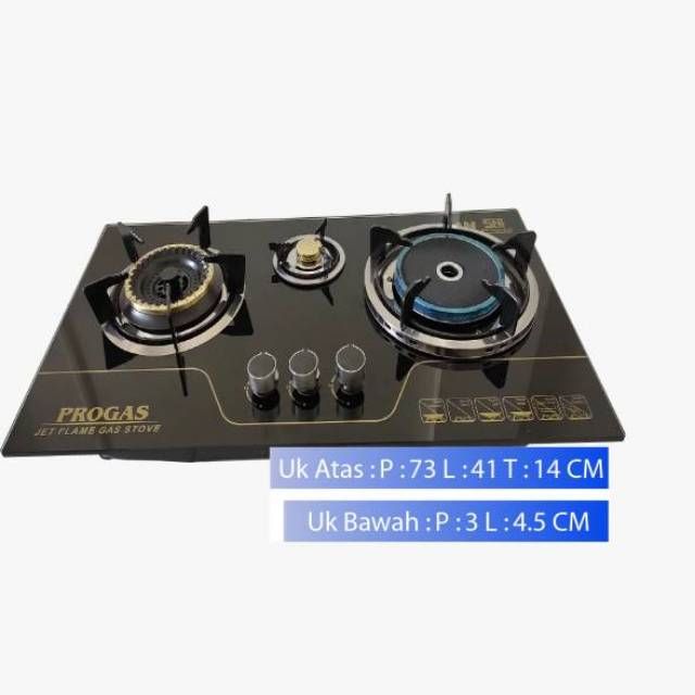 Kompor gas tanam kaca Progas 3 Tungku / 2 tungku api biasa 1 tungku api bara