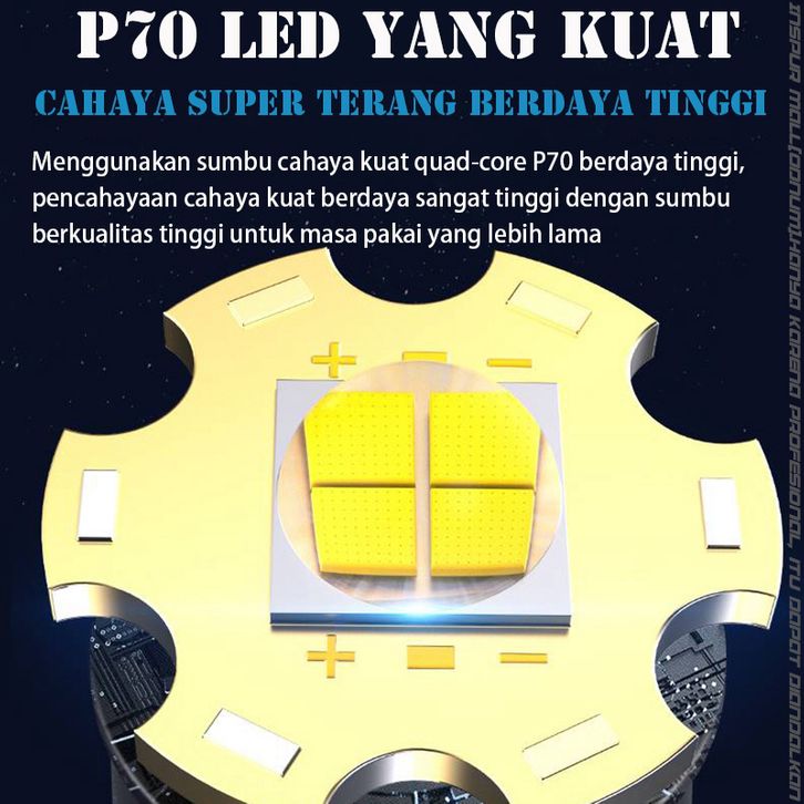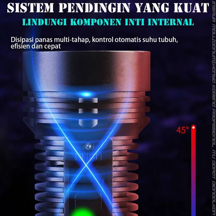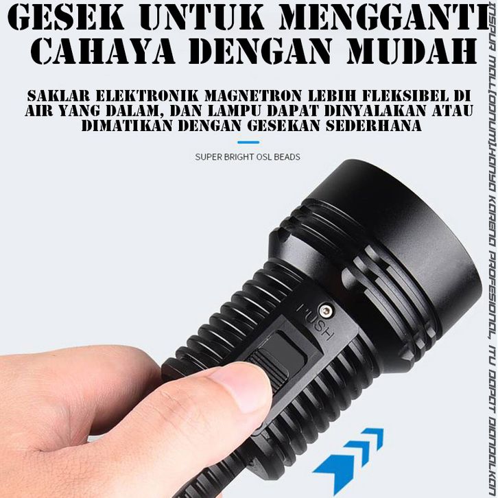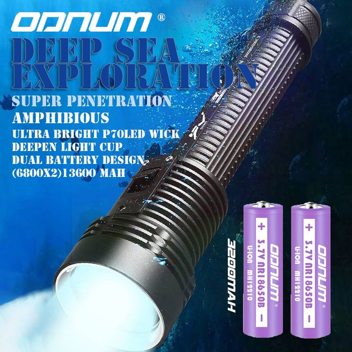 ODNUM Senter Selam Profesional P70 Cahaya Kuat LED Sumbu 150M Scuba Diving loggam Disegel Magnetron Baterai Ganda Bater