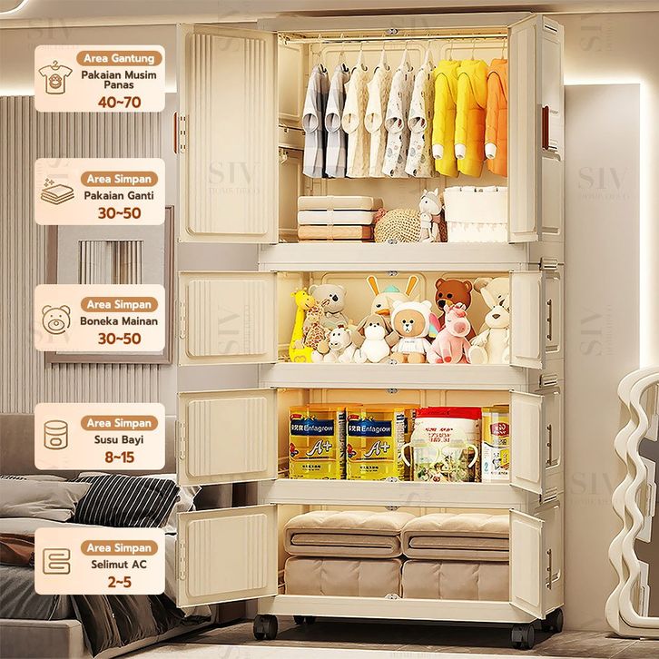 SIV 55-90cm Lemari Baju Bayi Plastik Lemari Pakaian Estetik Minimalis Anak Lemari Plastik Susun