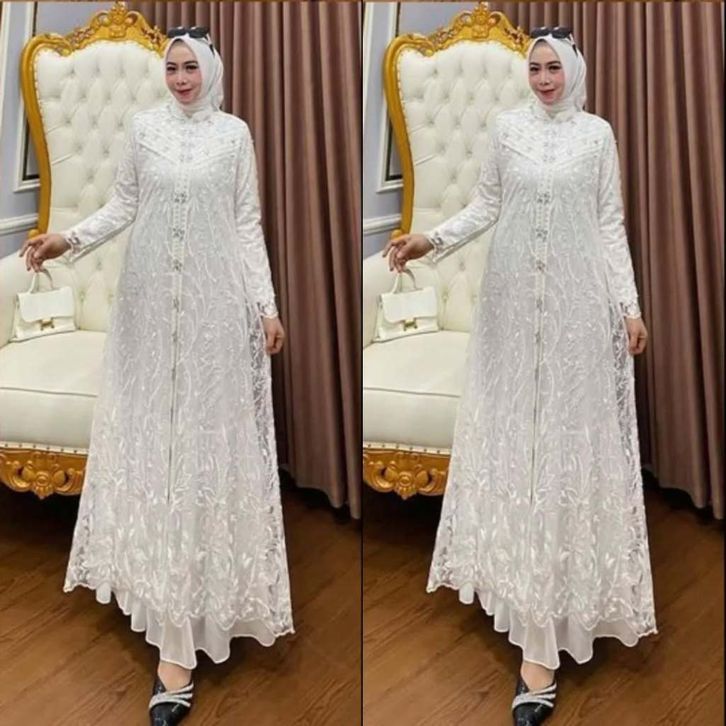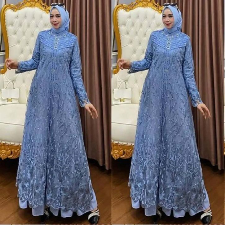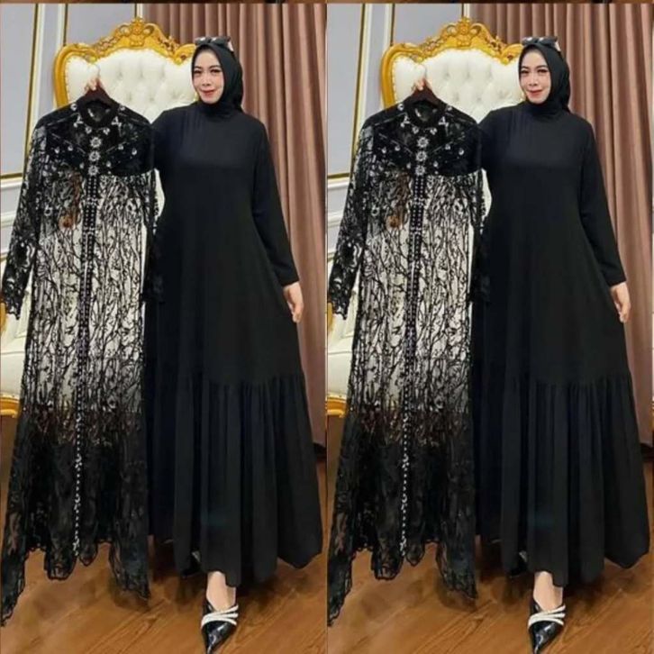 BAJU GAMIS SET OUTER BRUKAT MODEL TERBARU 2026 ZALLIA DRESS BL SIZE L XL XXL XXXL BAHAN CERUTY BABYDOLL APLIKASI PAYET