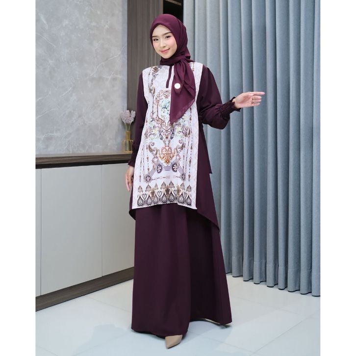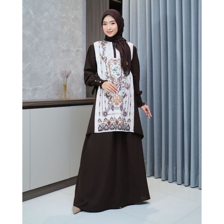 HANA SET ROK 2IN1 BAHAN SABRINA ANTI UV MIX PRINTING TERBARU
