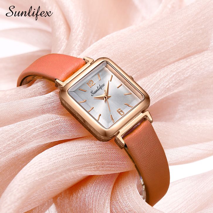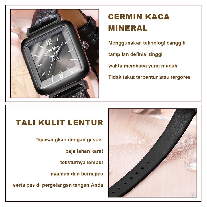 JAM TANGAN WANITA SUNLIFEX KECIL TALI KULIT KOREA STYLE MENAMPILKAN KUARSA MODE ANGGUN KUALITAS PRODUK ORIGINAL