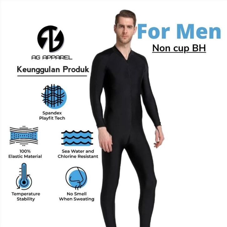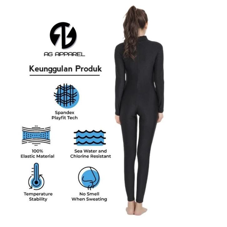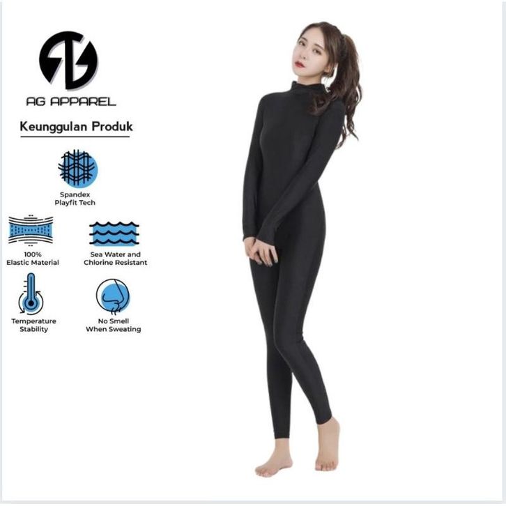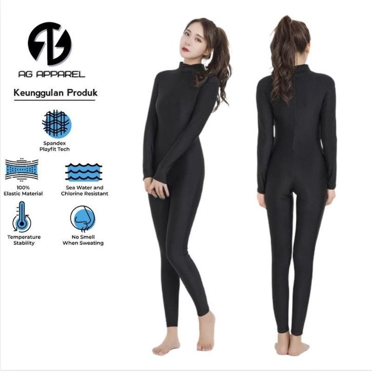 Baju renang pria & wanita panjang hitam polos surfing selam diving snorkeling