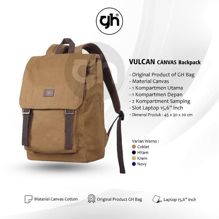 Tas Ransel VULCAN Canvas Backpack Tas Sekolah Kuliah Tas Laptop 15,6" Inch GH-Bag
