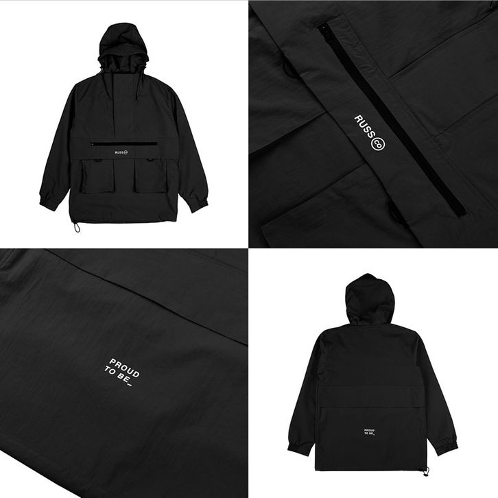Jaket Gunung Pria Russ Jacket Anorak Pria Bone Black (Up To Big Size) Jaket Hiking Pria Jaket Gorpore Jaket Outdoor Pria