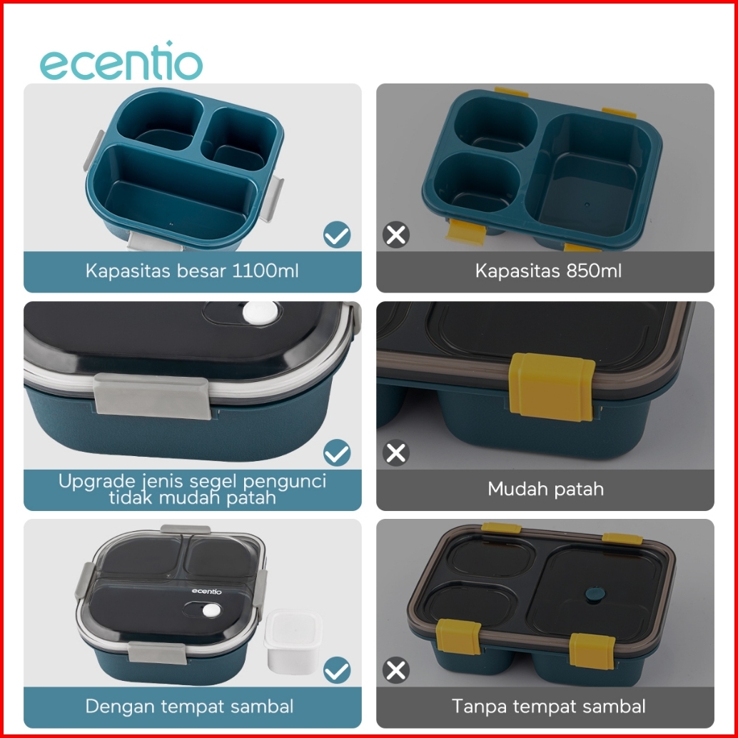 Ecentio Tempat Makan Anak Bpa Free 1100ml 780ml Botol Minum Dapat Digunakan Untuk Microwave Kotak Bekal Anak Anti Bocor
