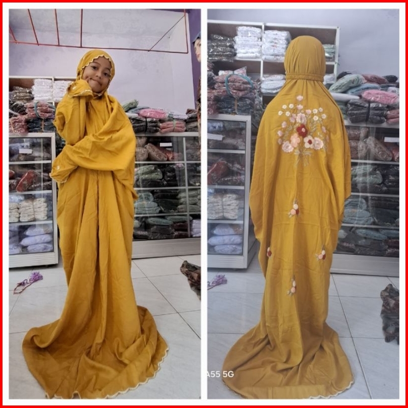 Mukenah Anak Terusan Usia 5-12 Th Bordir Tile Panjang 175-180 Cm