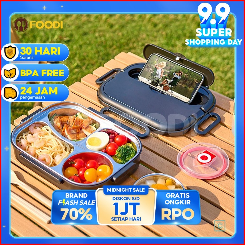 Ecentio Kotak Makan Stainless Steel 304 1 Liter Anti Tumpah Kedap Praktis Untuk Outdoor