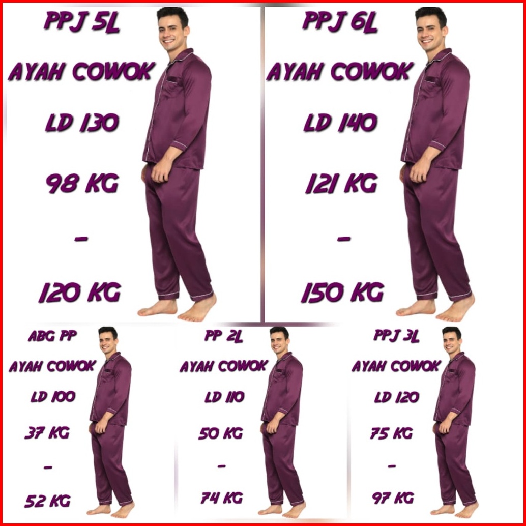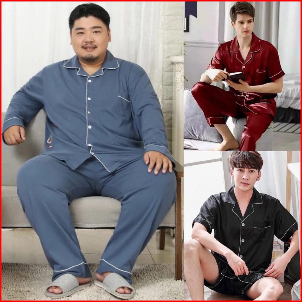 Part2 Piyama Baju Tidur Jumbo Pria Cowok Ld 120 130 140 Set Celana Bahan Satin Silk Premium