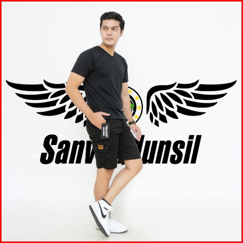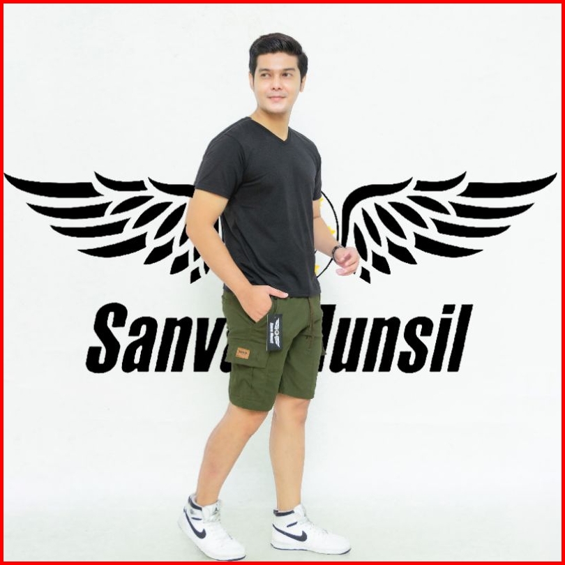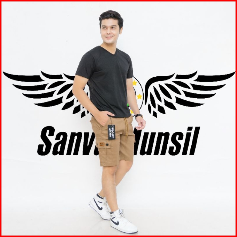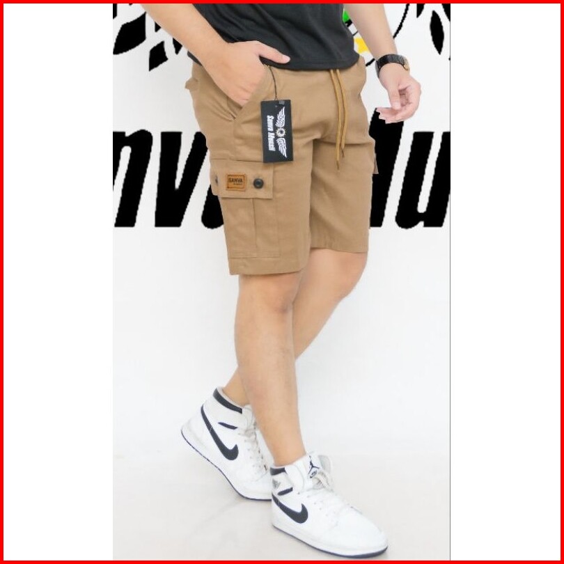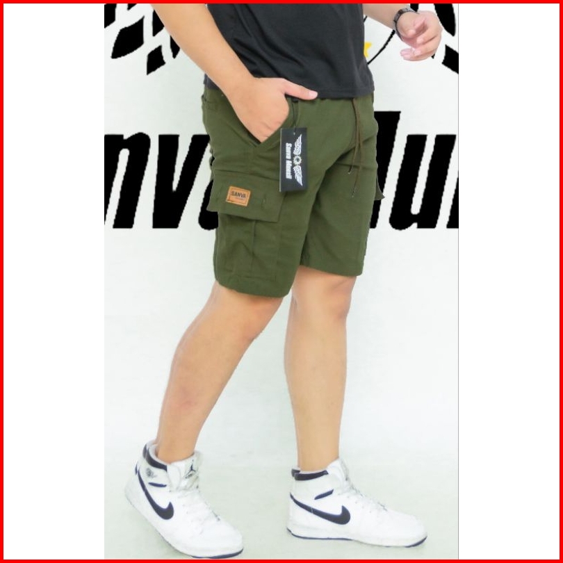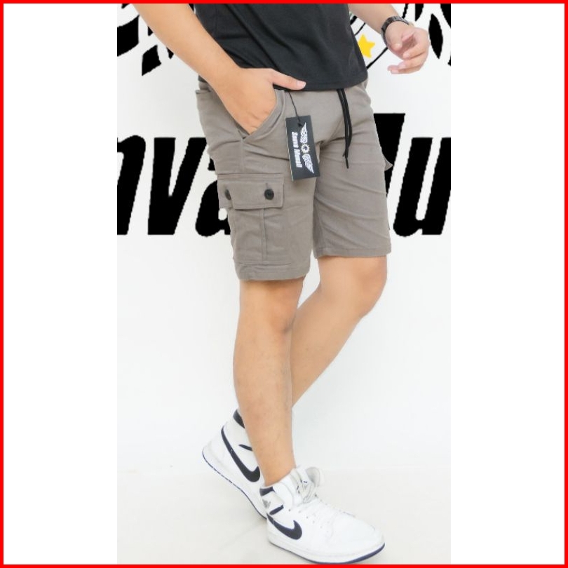 Celana Pendek Cargo Pria Boardshort Dewasa Model Terkini Pinggang Karet Melingkar All Size Standar Bahan Combet Strit Me