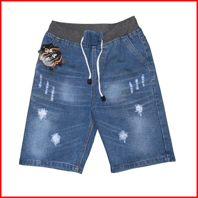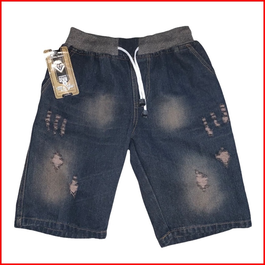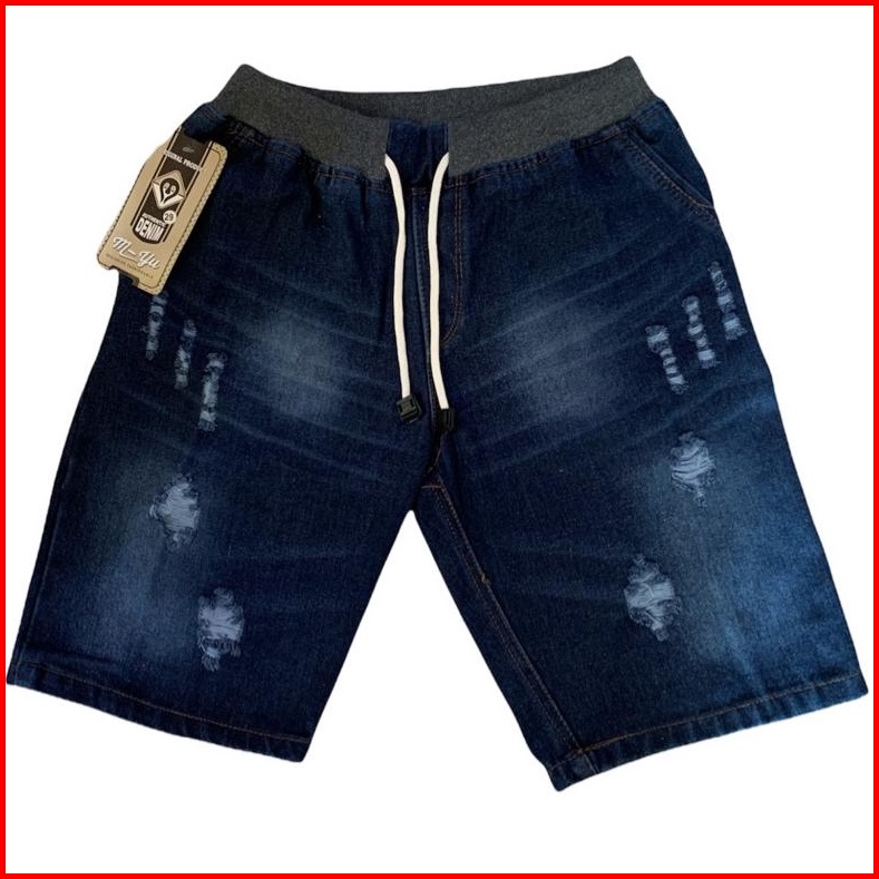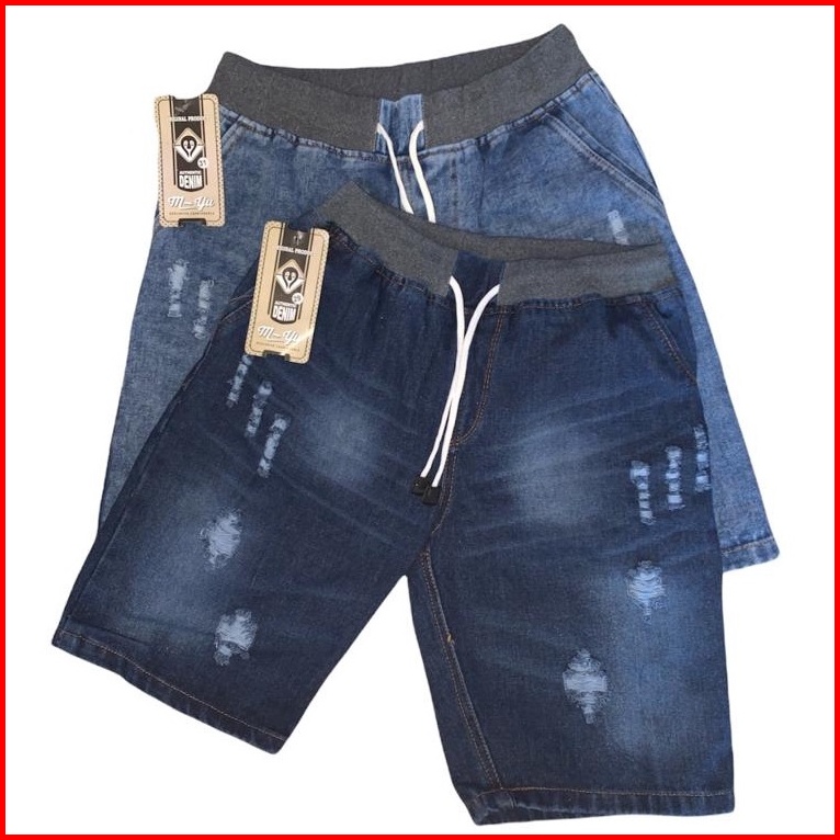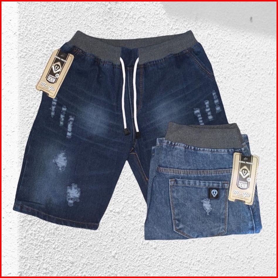 Celana Pendek Pria Jeans Kolor Rib Pinggang Karet M-yu