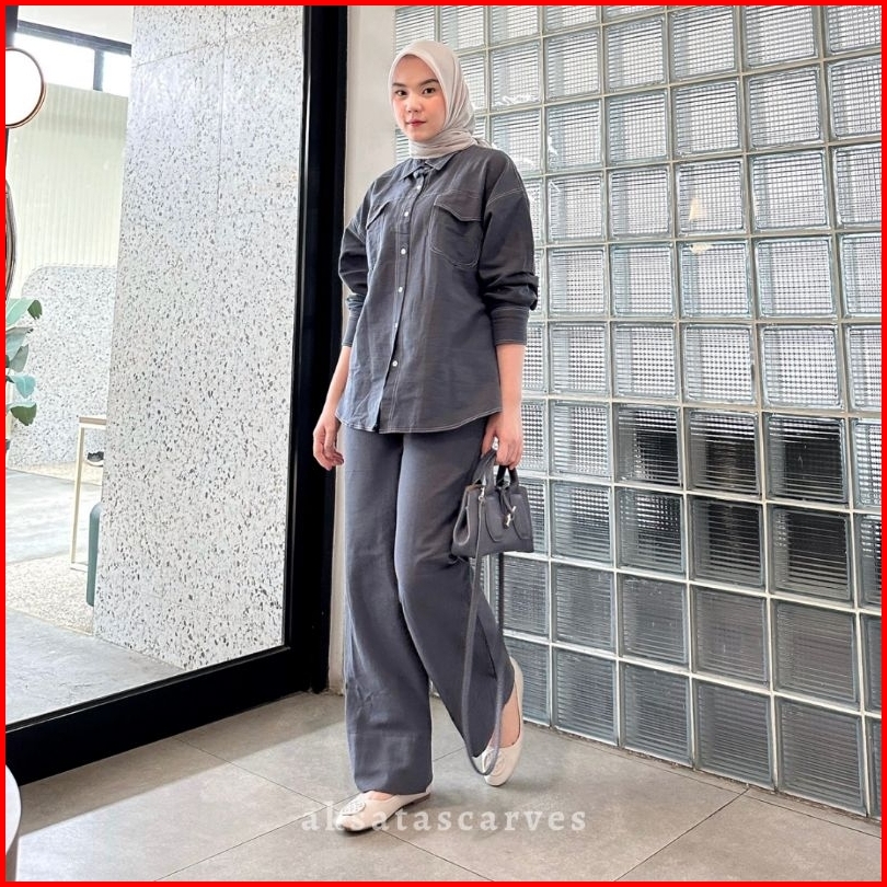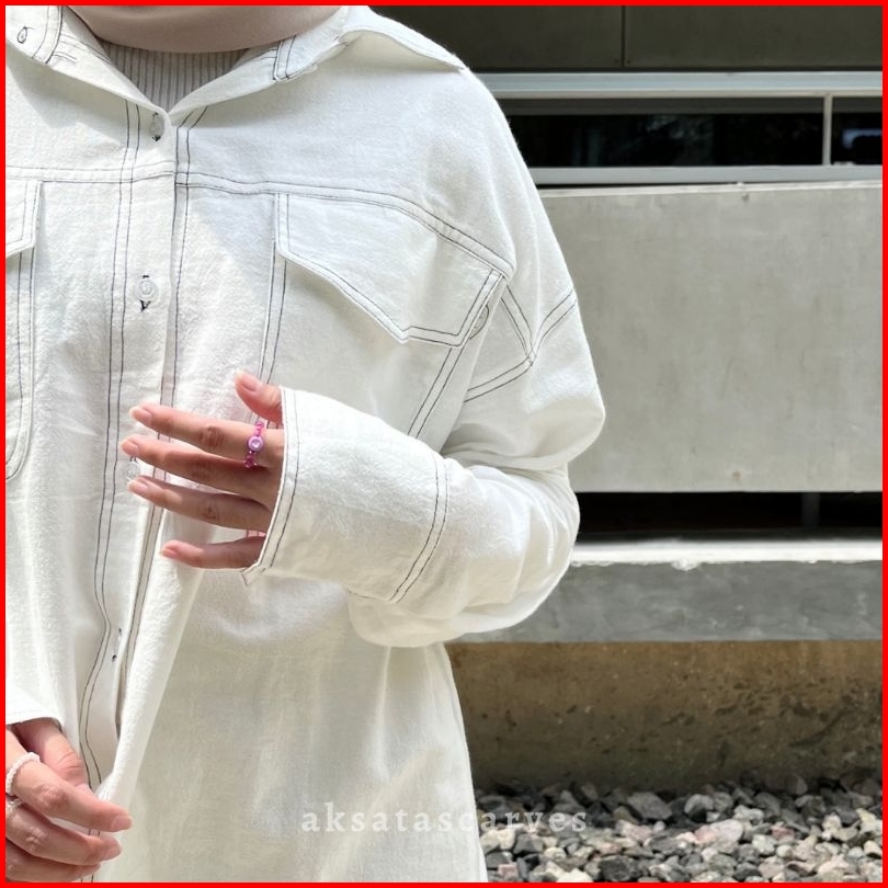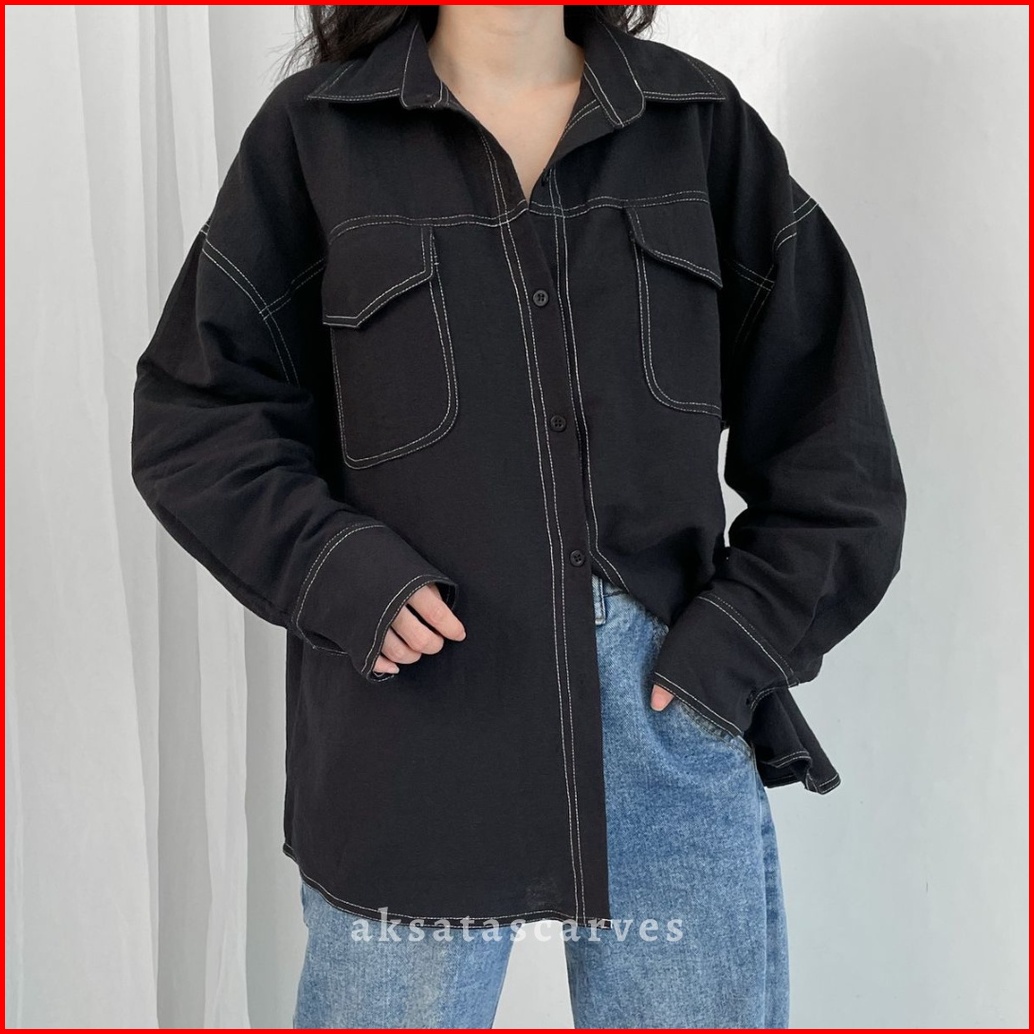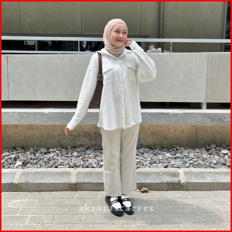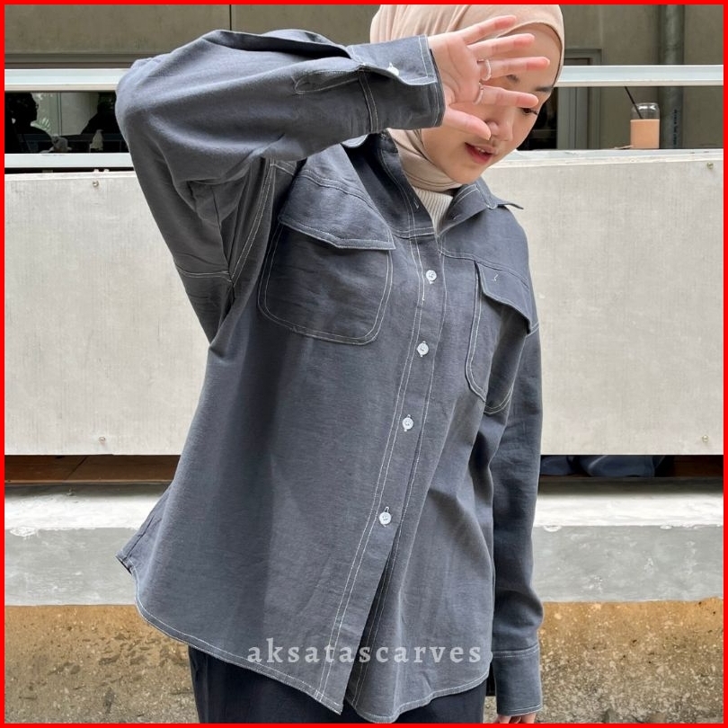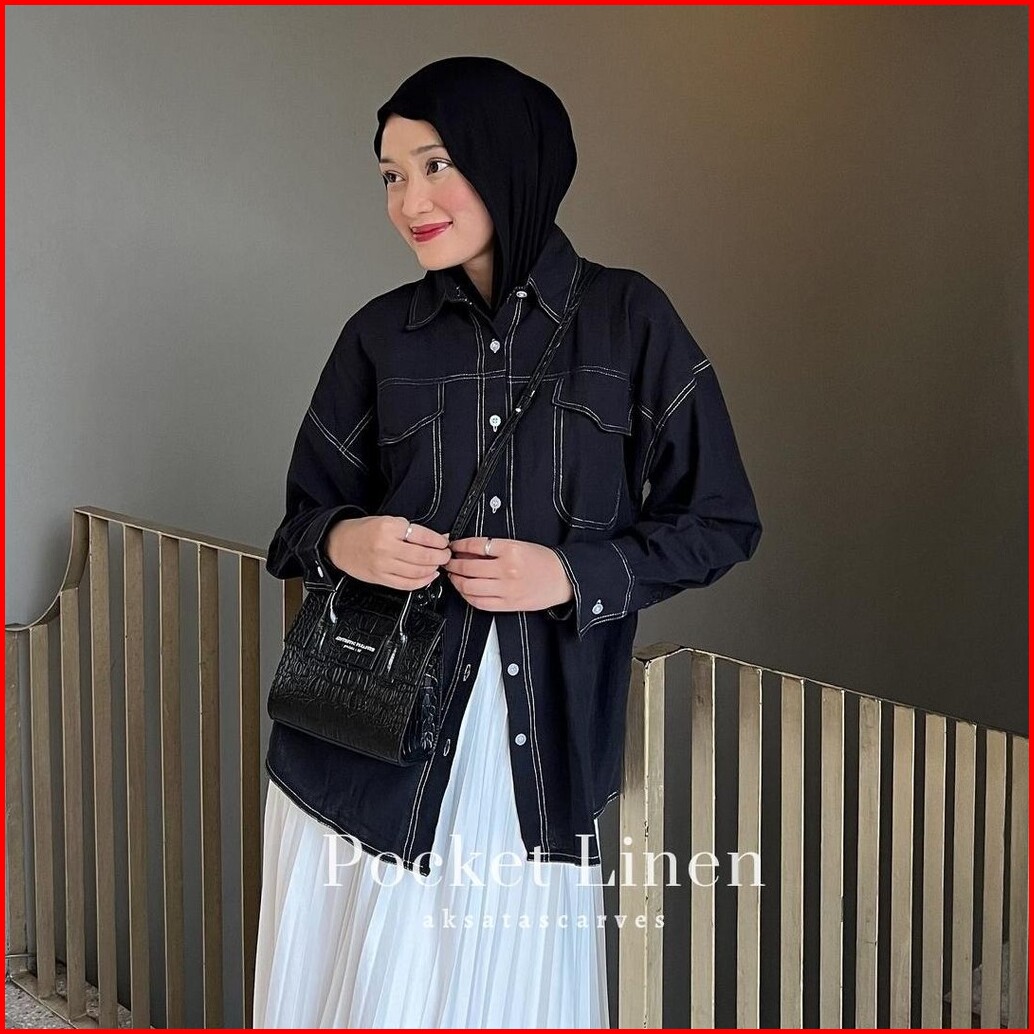 Pocket Oversized Linen Shirt - Kemeja Linen Oversized By Aksata