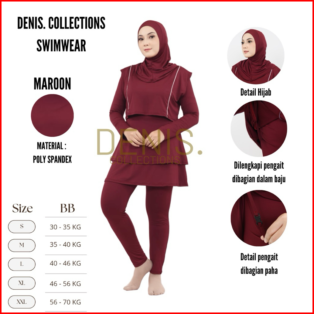 Denis Swimwear Et03- Baju Renang Muslimah Syari Dewasa Wanita Muslim Perempuan Remaja Swimwear Hijab