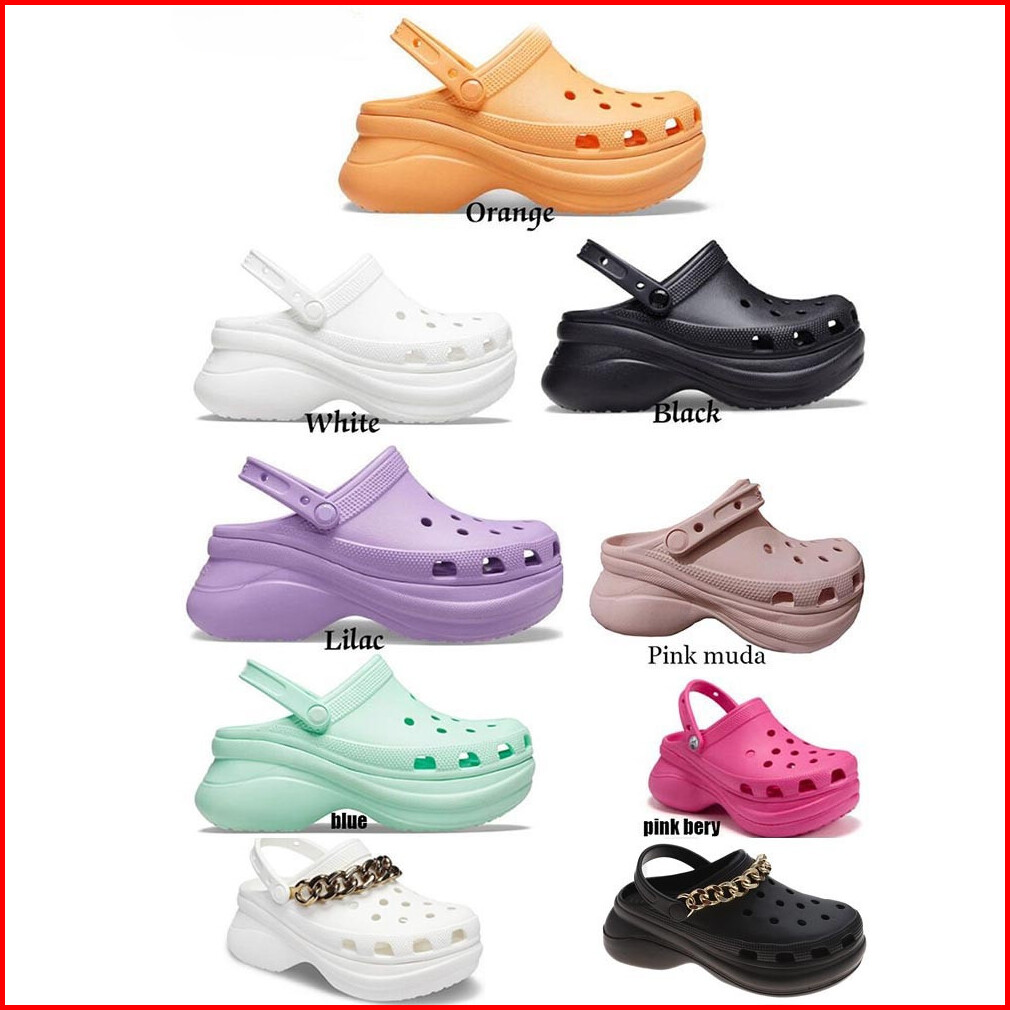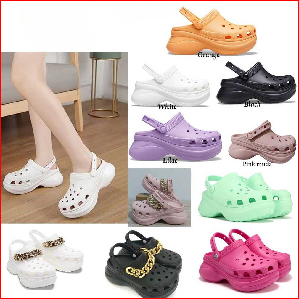 Sanda Classic Bae Clog Sandal Wanita Cross Platform Chain Embellished Tinggi 7-8cm
