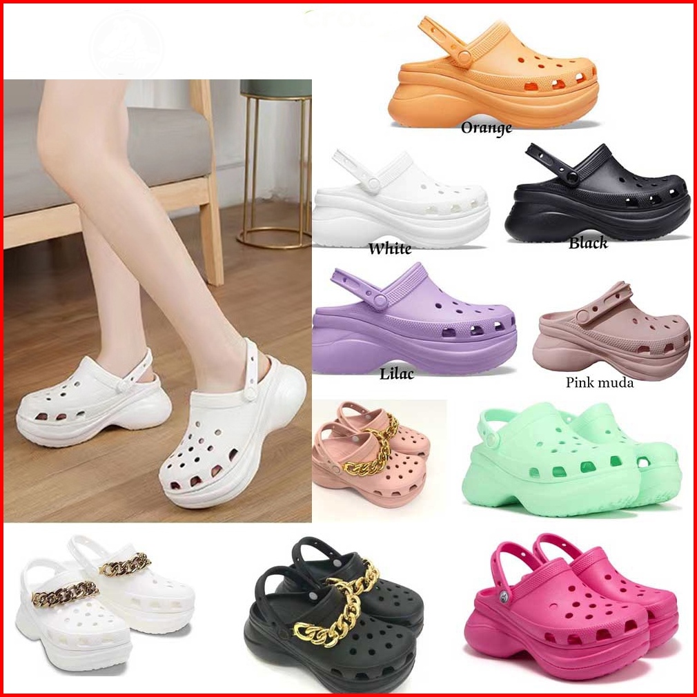 Classic Bae Clog Cross Sandal Wanita Platform Chain Embellished Tinggi 7-8cm