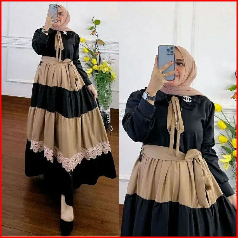 Asmiranda Maxi Dress Wanita Terbaru Murah Kekinian Gamis Crinkle Airflow Terlaris