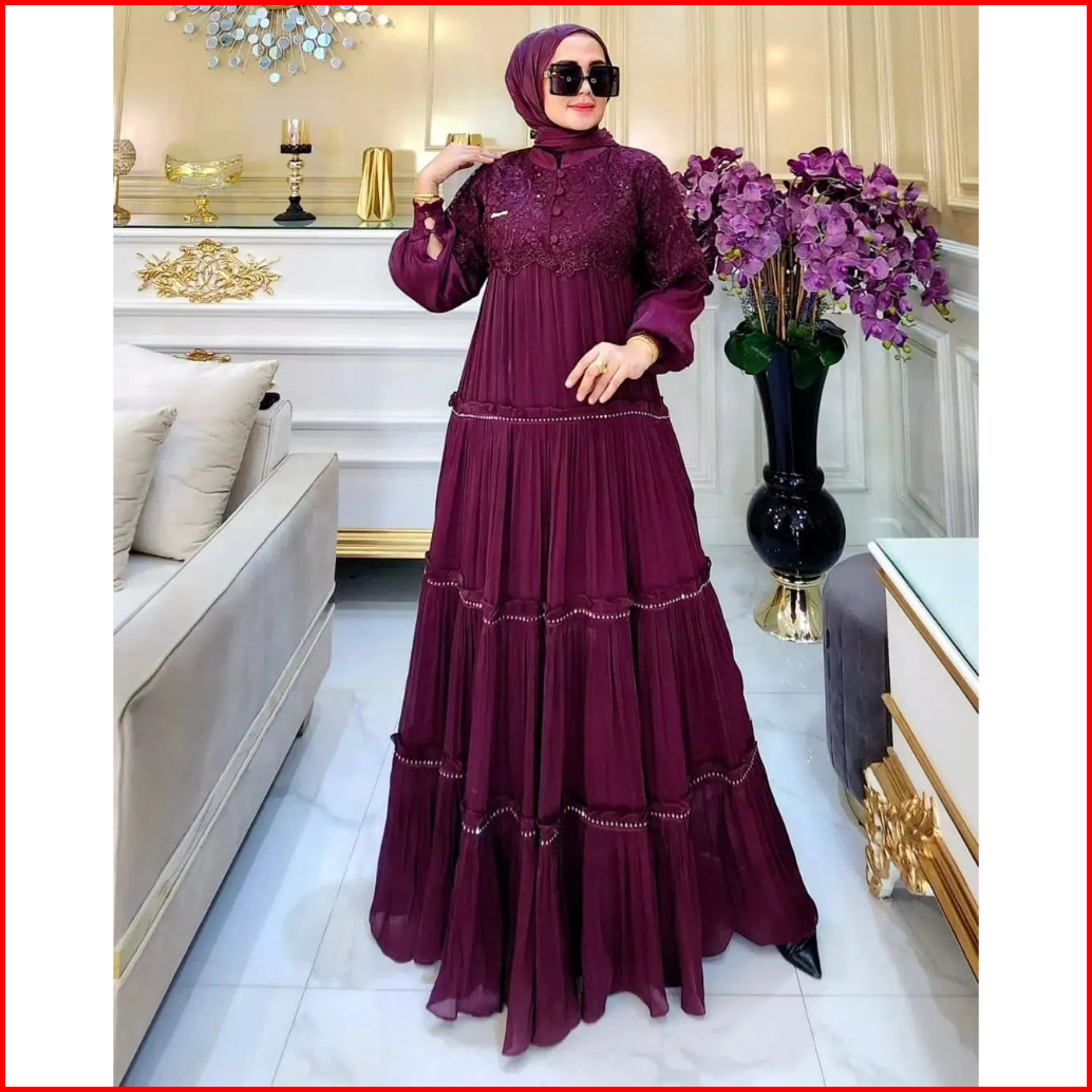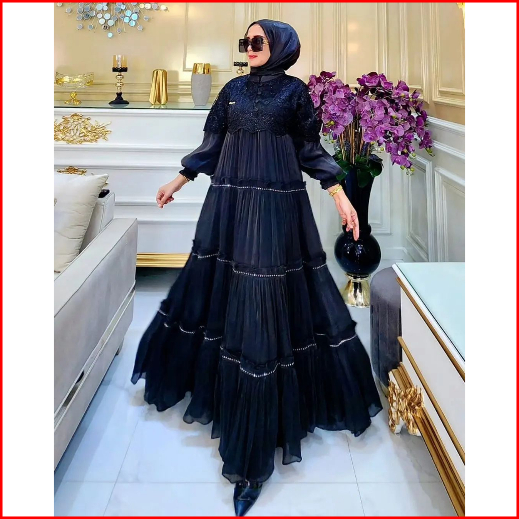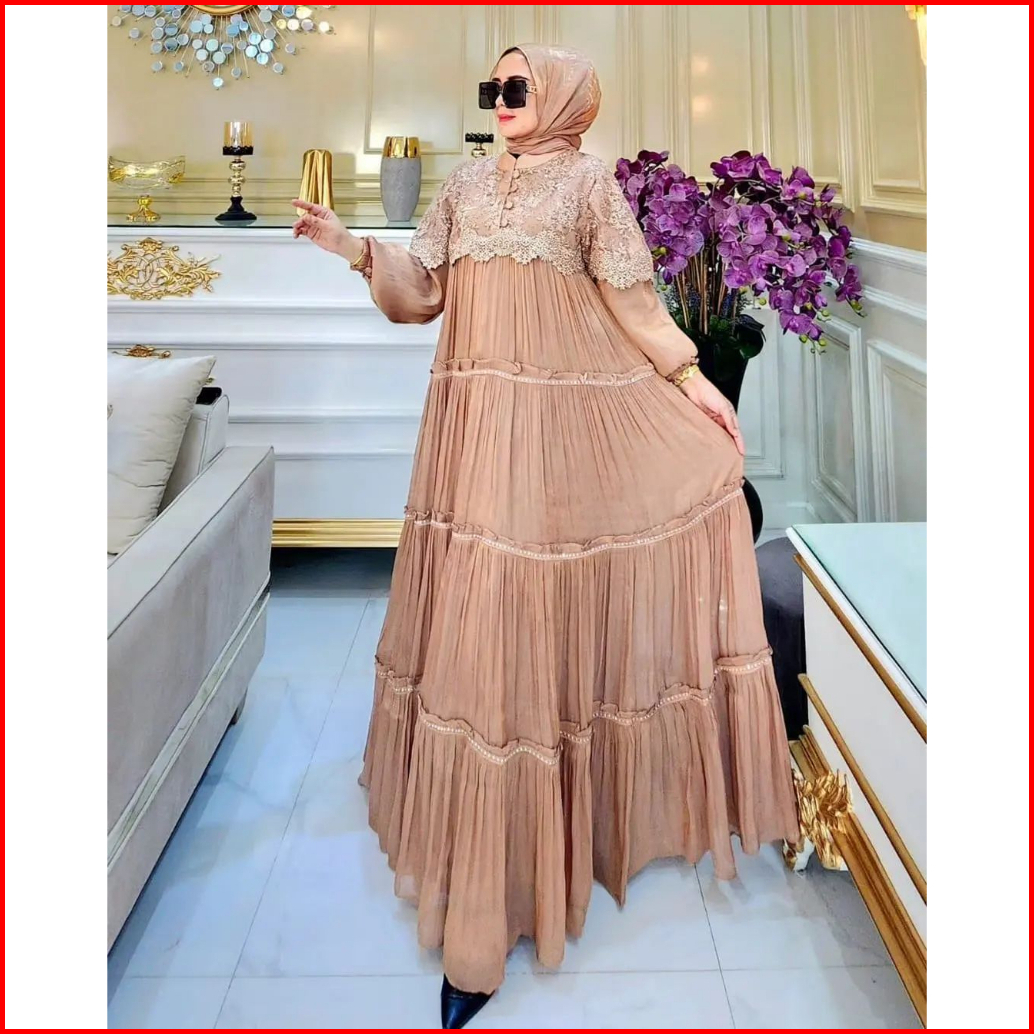 Gamis Kondangan Mewah Jelita Dress Bc Bahan Kain Shimer Mix Brukat Aplikasi Payet Size M L Xl Xxl Xxxl Dress Shimmer Sil