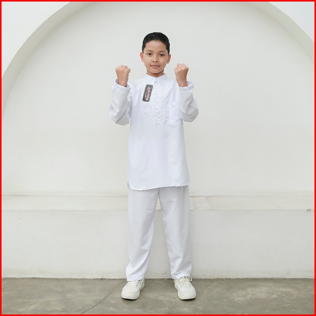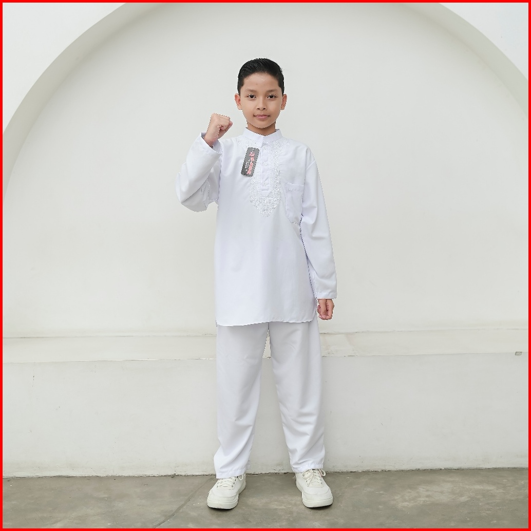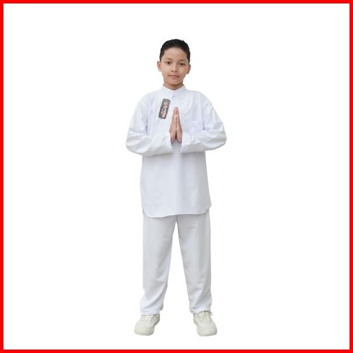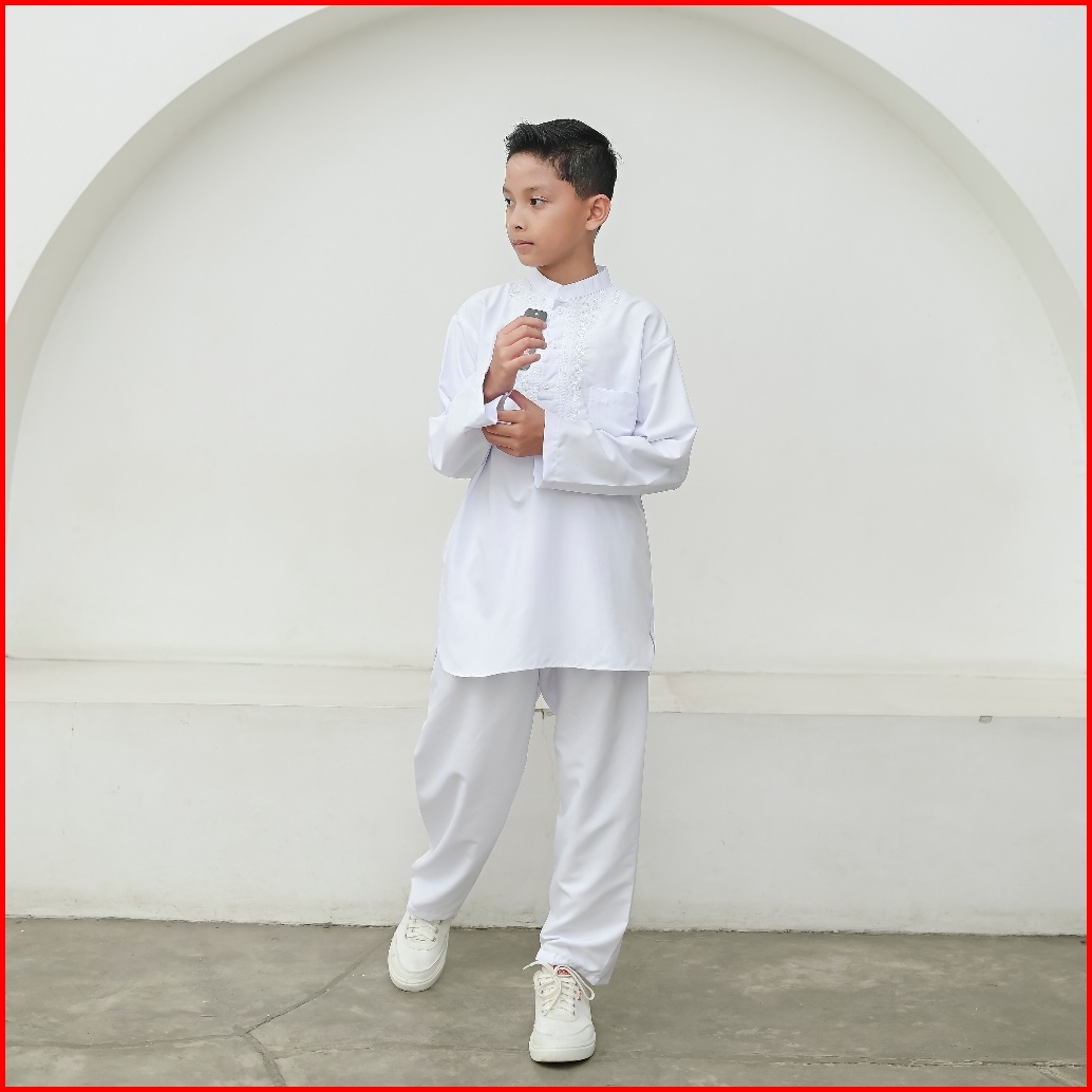 Setelan Baju Koko Putih Lengan Panjang Anak Laki-laki Putih Bersih