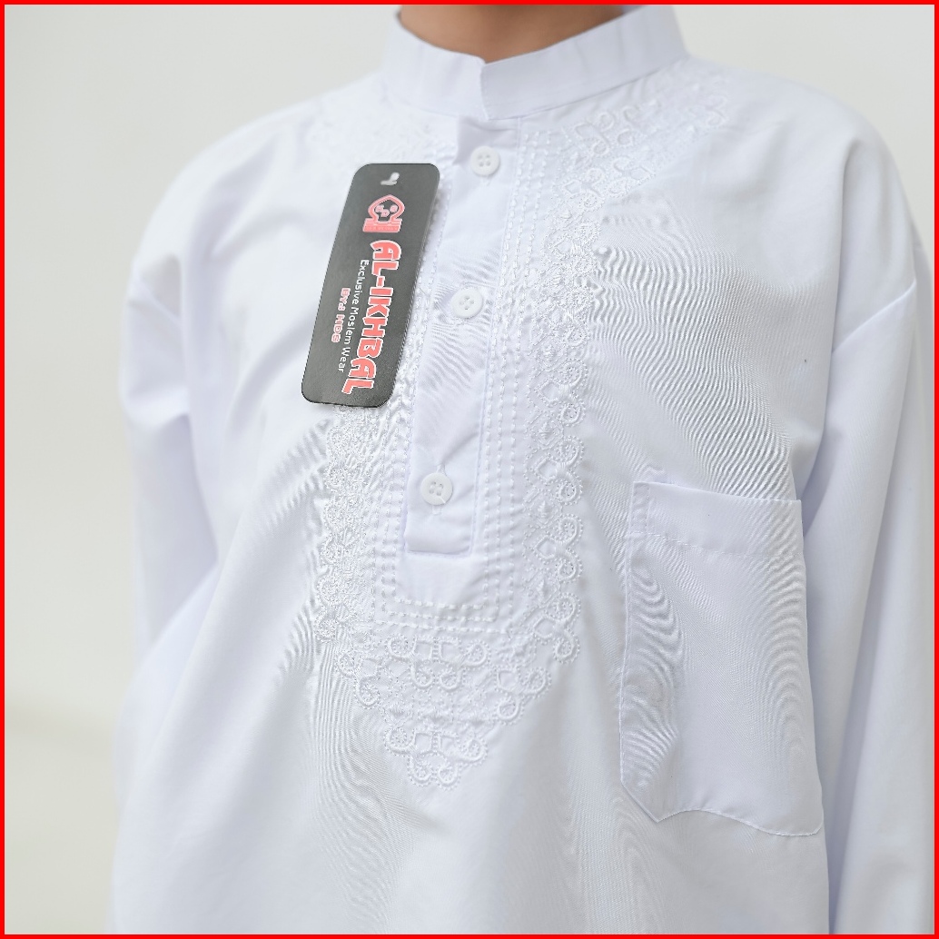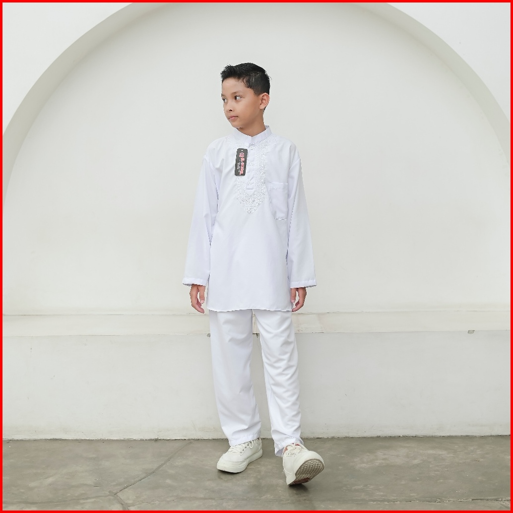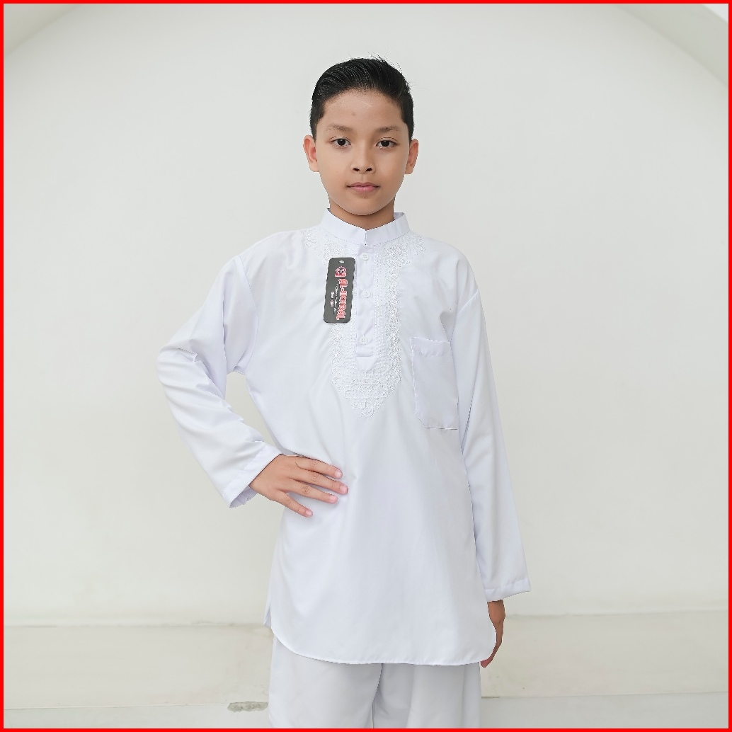 Setelan Baju Koko Putih Lengan Panjang Anak Laki-laki Putih Bersih