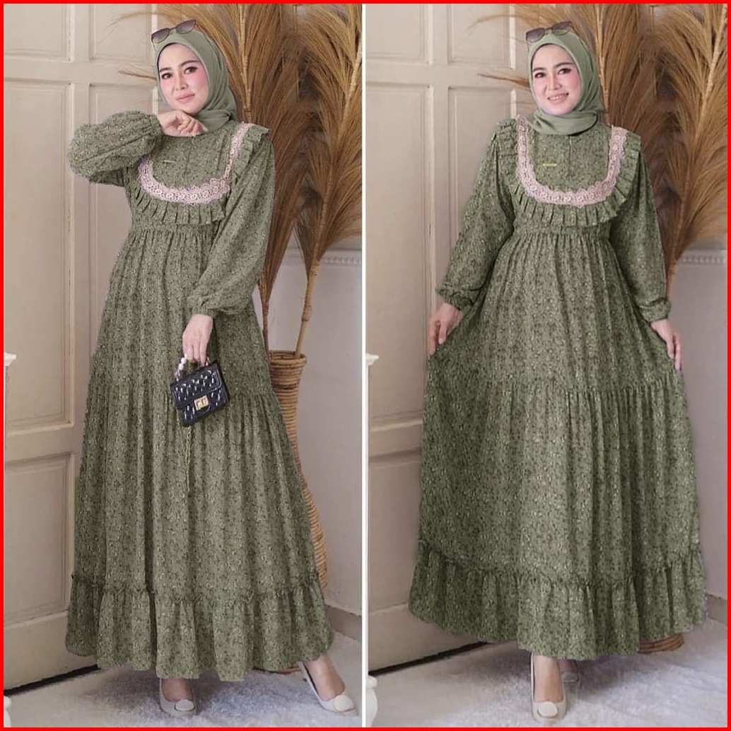 Gamis Wanita Terbaru Sakura Dress Bahan Ceruty Babydoll Premium Full Puring Motif Bunga Ukuran M L Xl Dan Xxl Gamis Wani