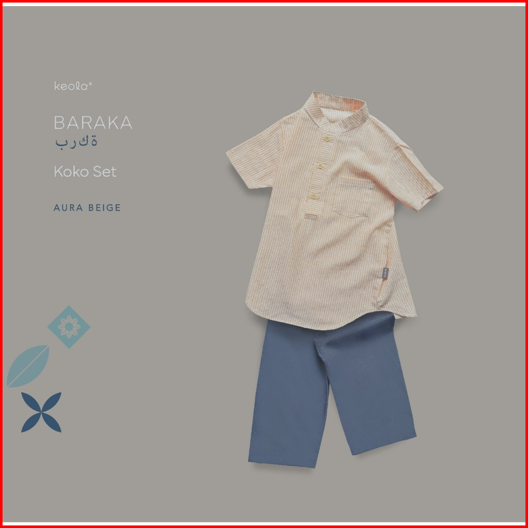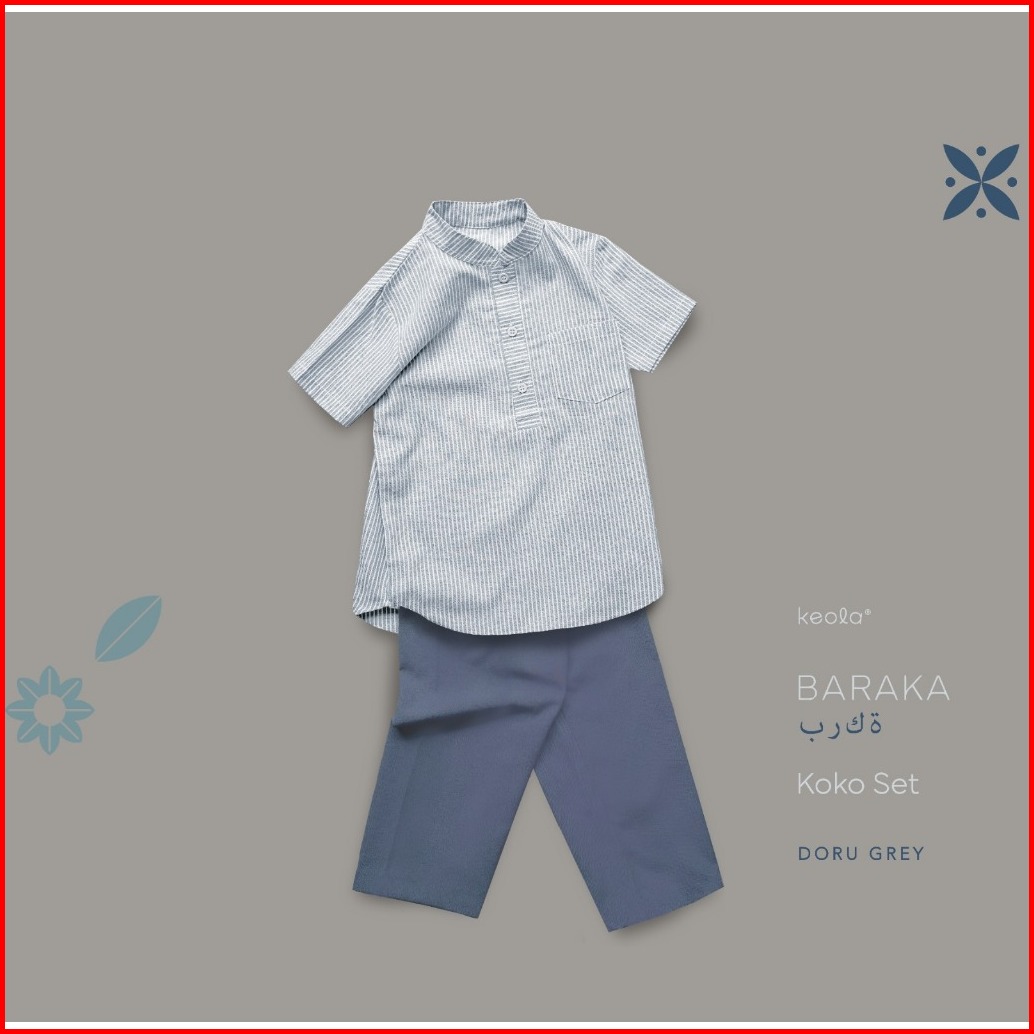 Keola - Setelan Koko Baraka Baju Koko Stripe Anak Ramadhan Setelan Muslim Koko Set Anak Usia 1 - 11 Tahun