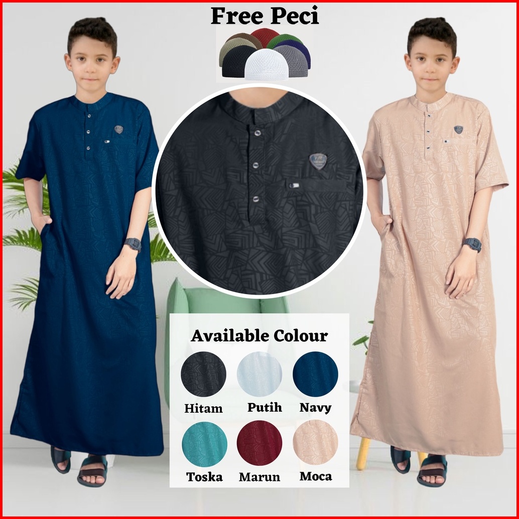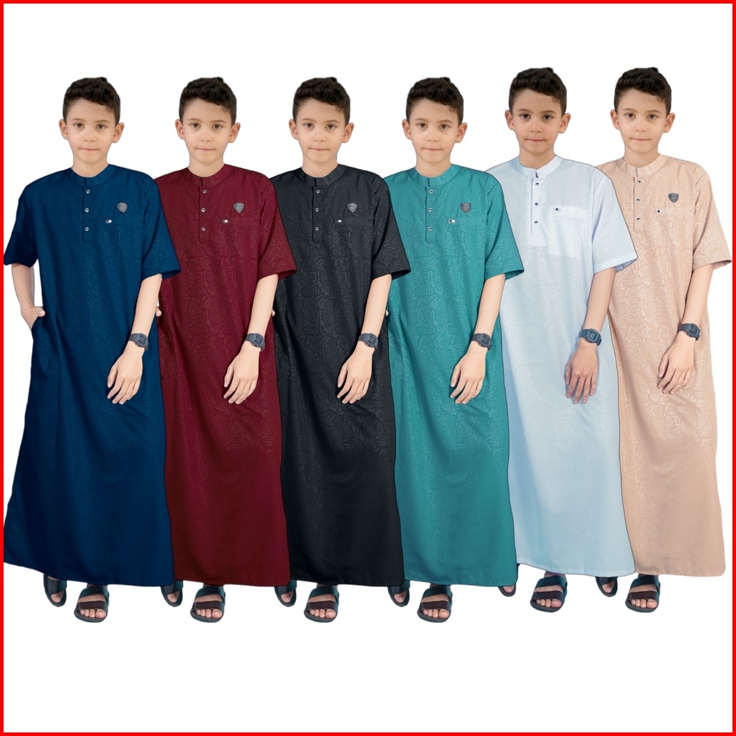 Family Muslim - Gamis Azmi Gamis Anak Embos Pria Usia 1-14 Tahun Jubah Anak Laki Laki Termurah