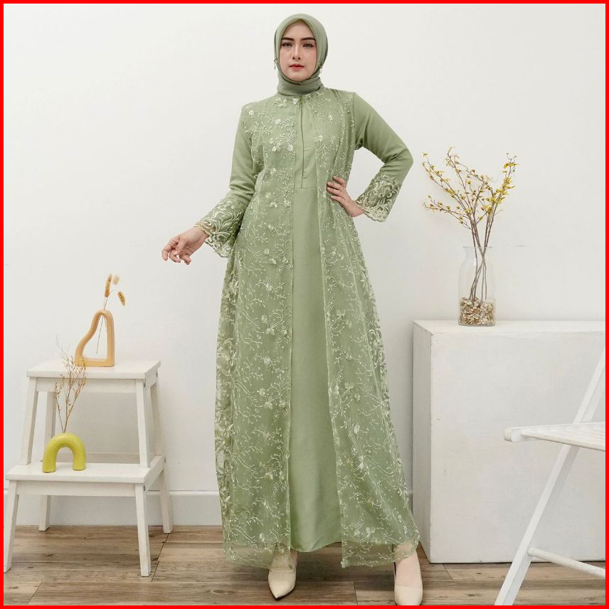S M L Xl Xxl Gamis Hena Busui Tile Bordir Mutiara Maxi Dress Lebaran Brukat Tulle Baju Muslim Dress Muslim Pesta Maxi Ko