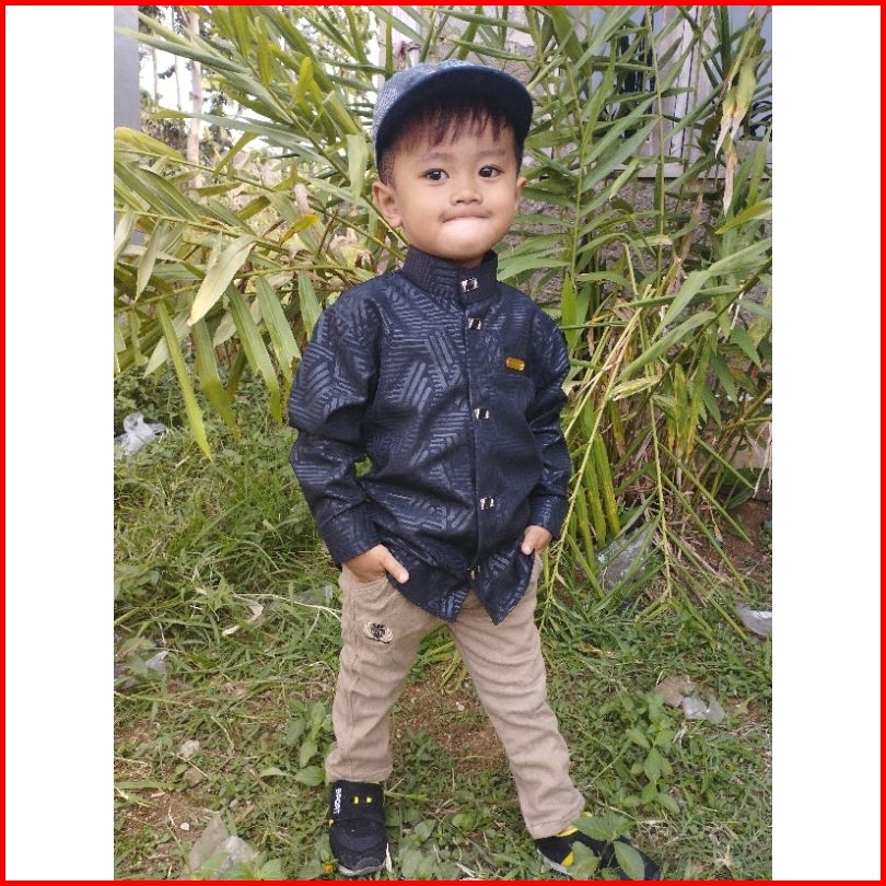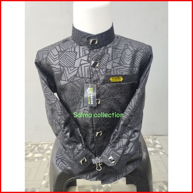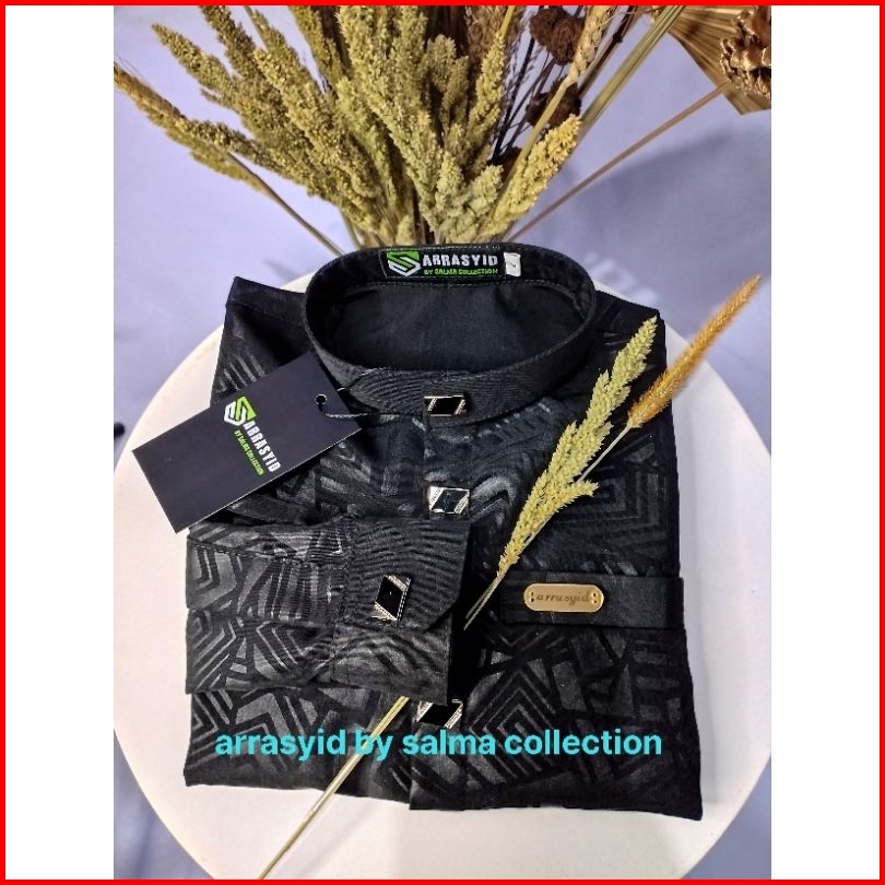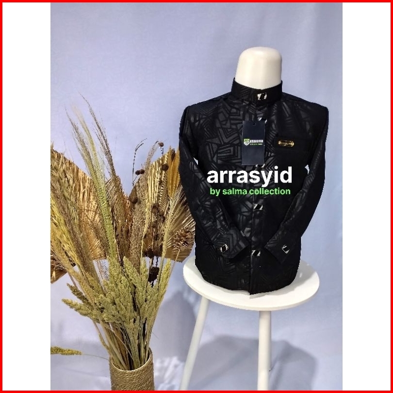 Kemeja Koko Sultan Arrasyid Anak Usia 1-12 Tahun Embos Premium Model Terbaru Hitam