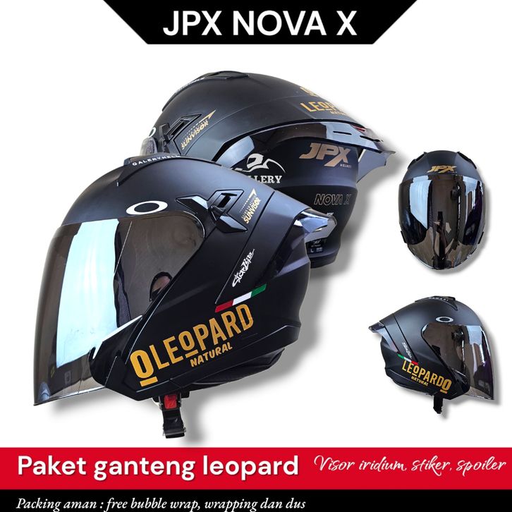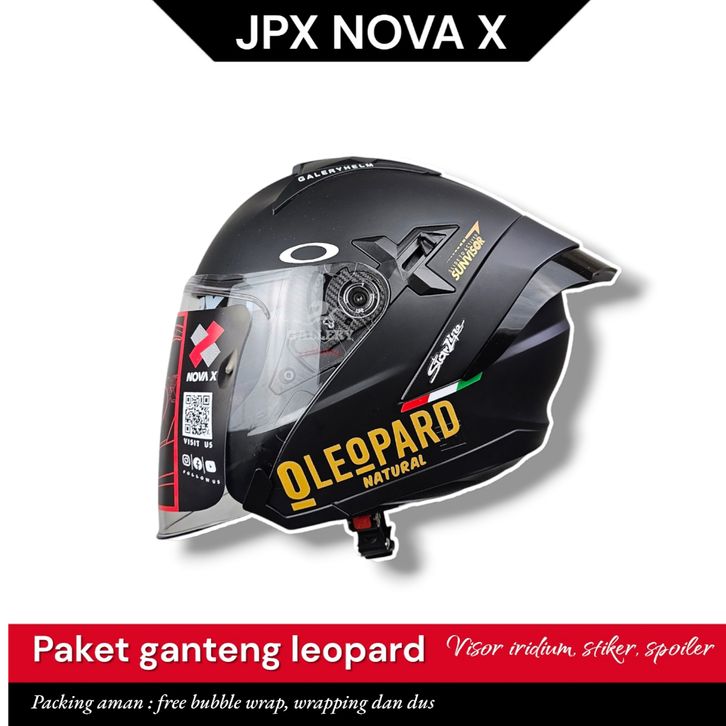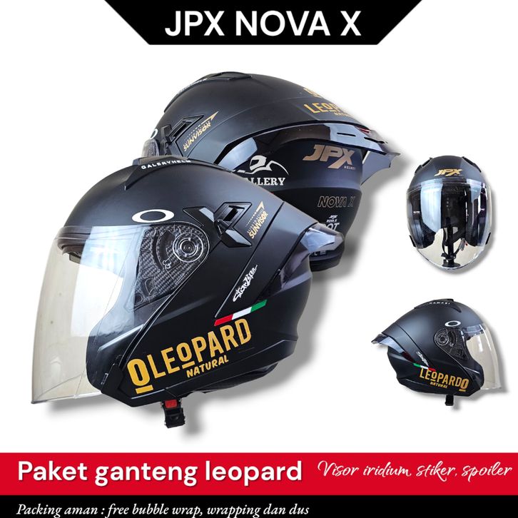 Helm Jpx Nova X V2.0 Black doff | Paket Ganteng Leopard | Helm Half Face