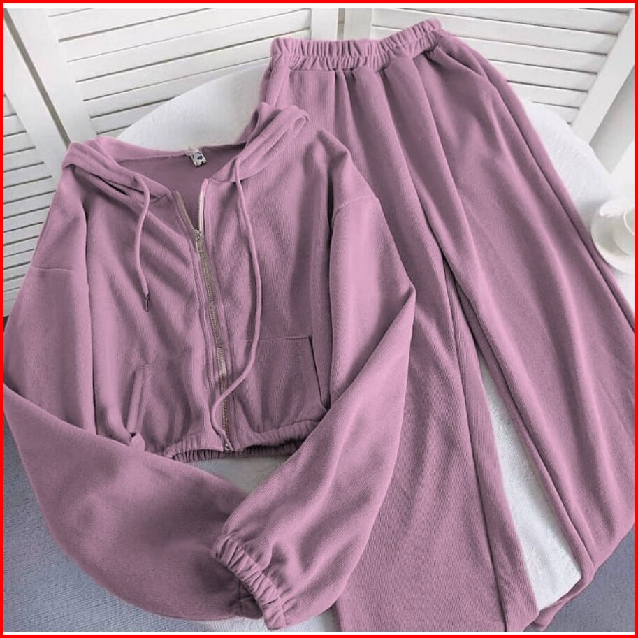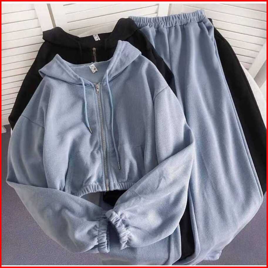 Set Setelan Hoodie Crope Celana Kulot Wanita Zera One Set Wanita Setelan