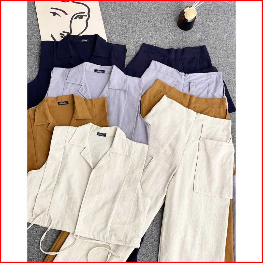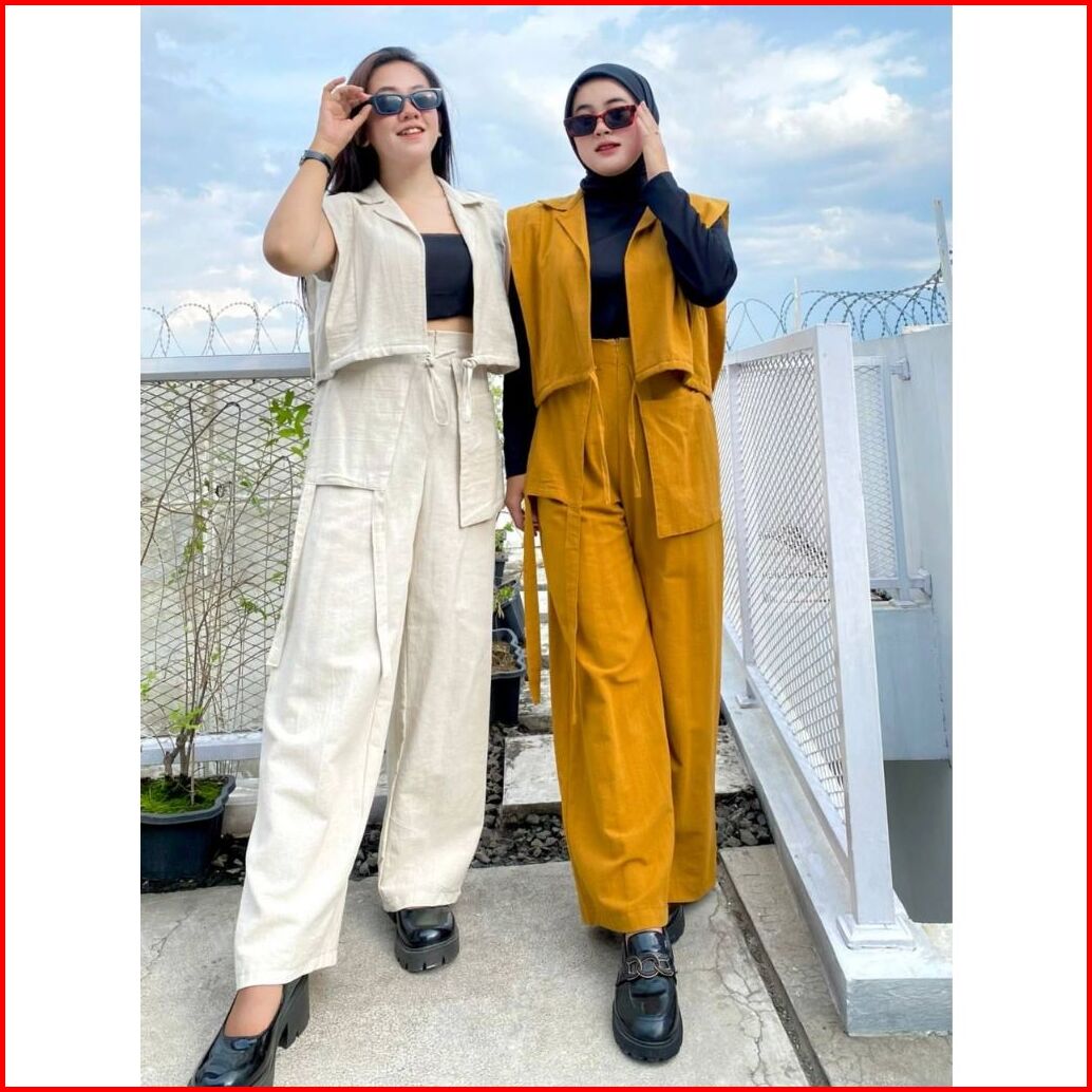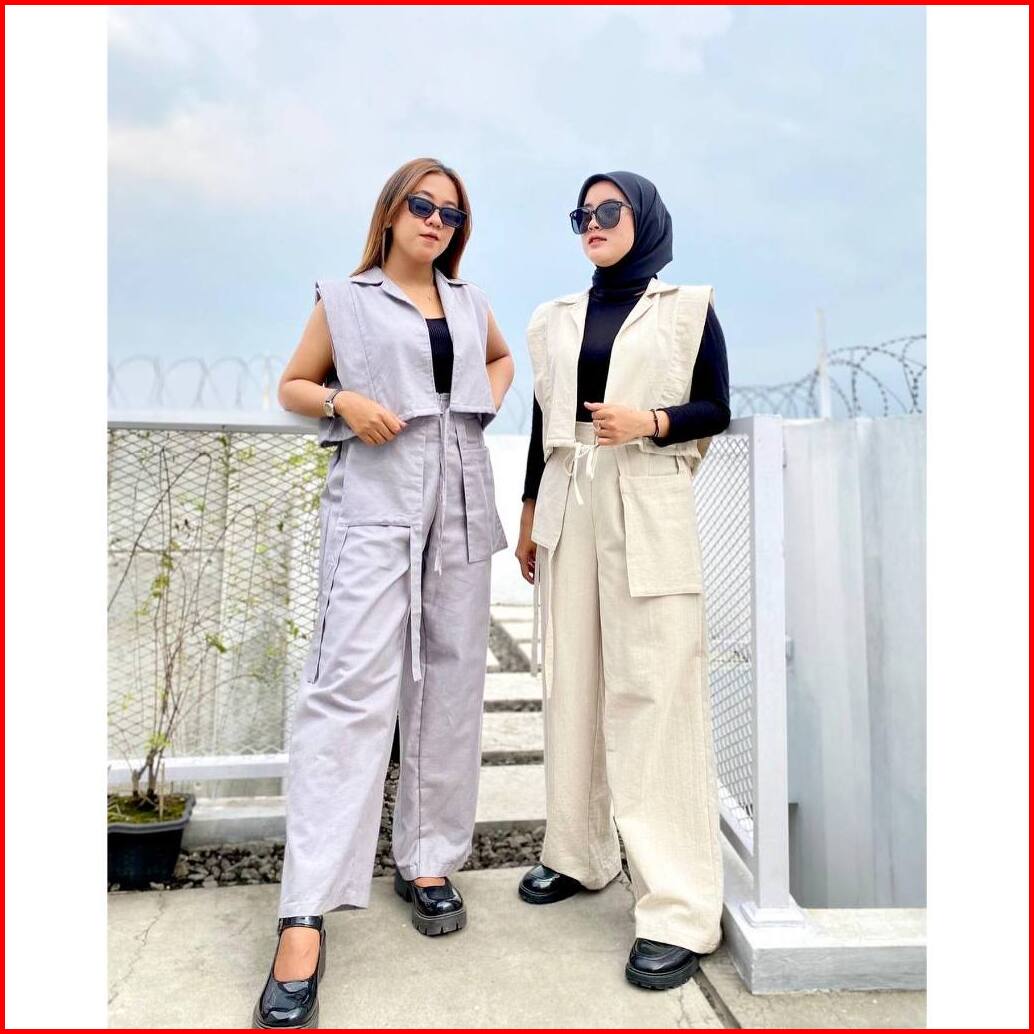 Doshe Oneset Vest Pants Korean Style Setelan Wanita Terbaru Linen Angel
