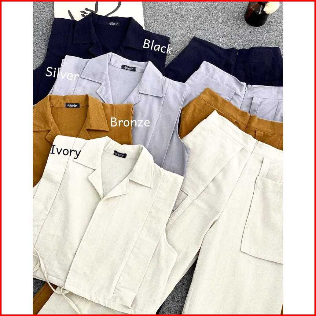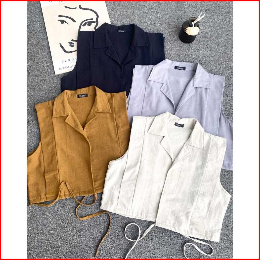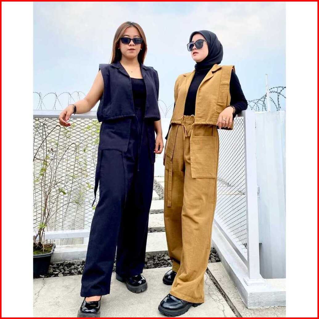 Doshe Oneset Vest Pants Korean Style Setelan Wanita Terbaru Linen Angel