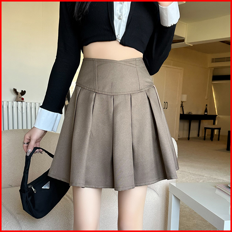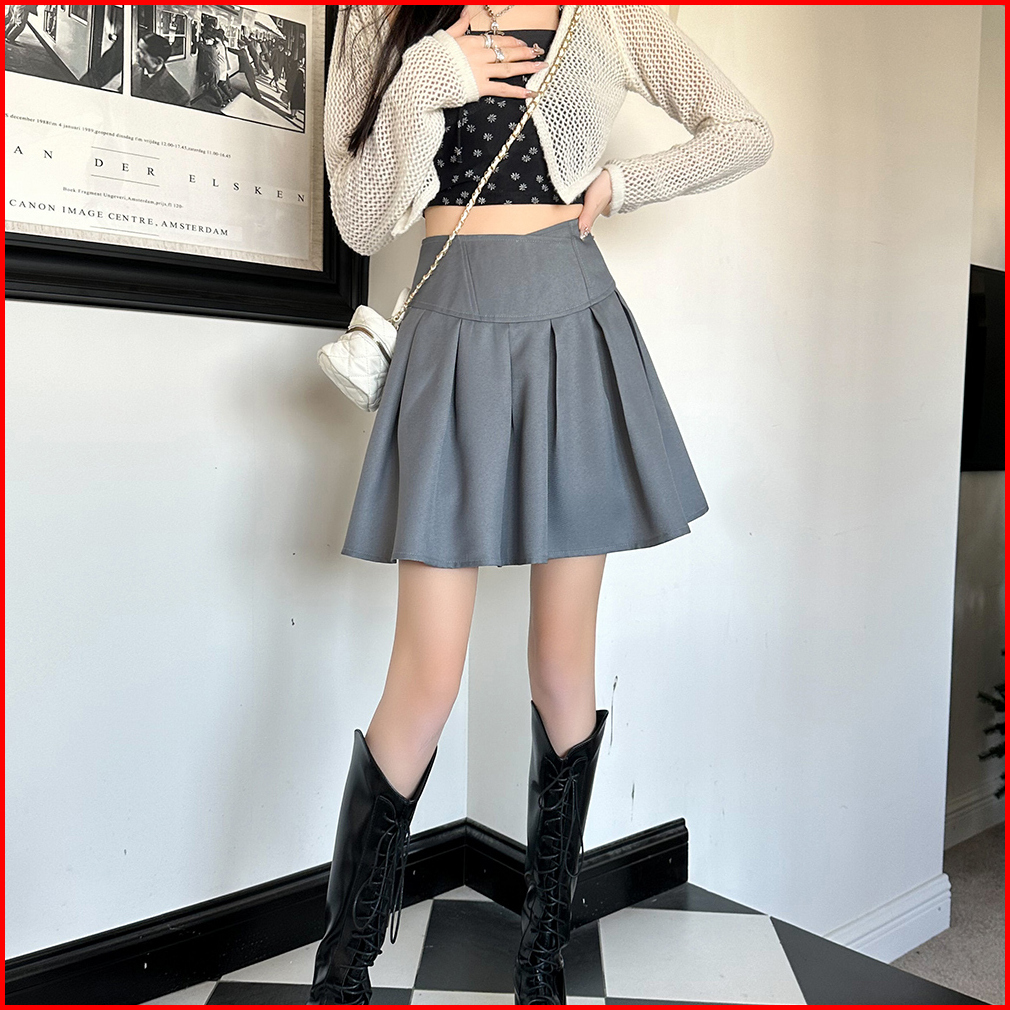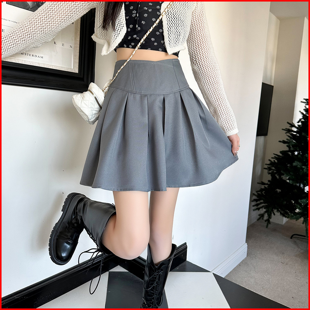 Elegant High Waist Zip Up A Line Pleated Mini Skirt 2972 S M L Xl