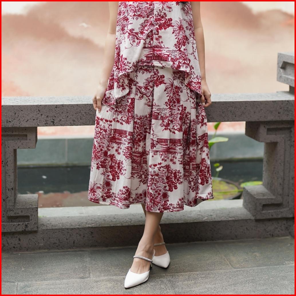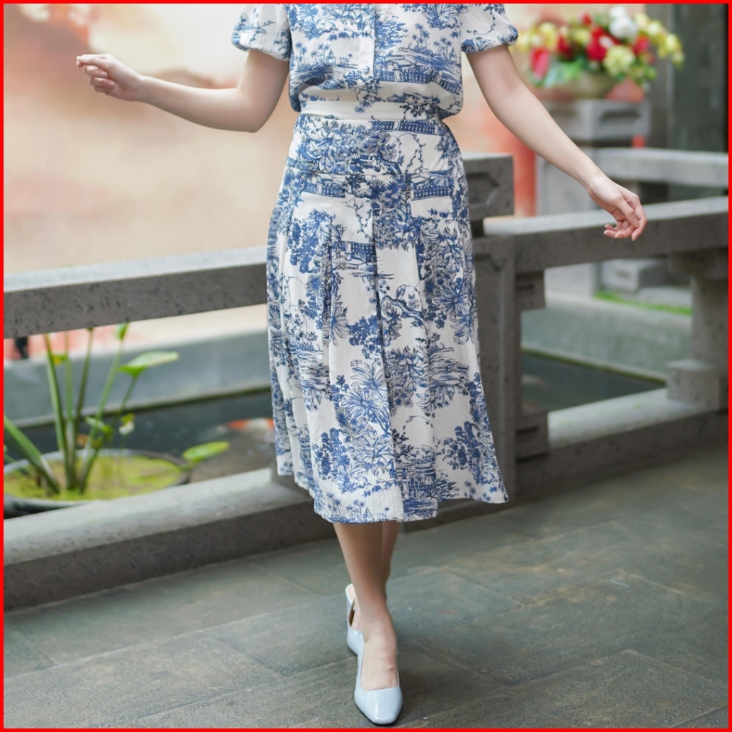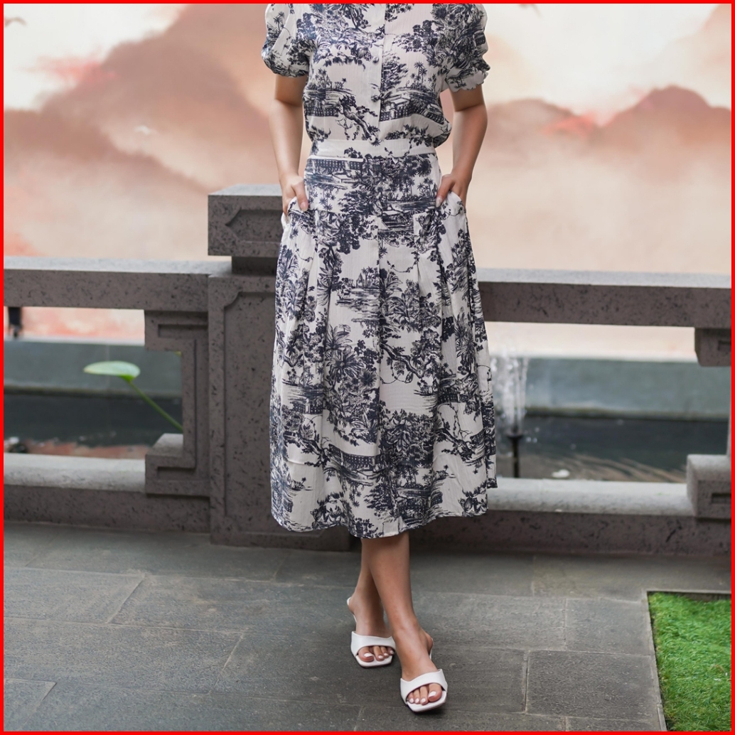 Beatrice Clothing Lorei Skirt - Chinoiserie Big Pleats Midi Skirt