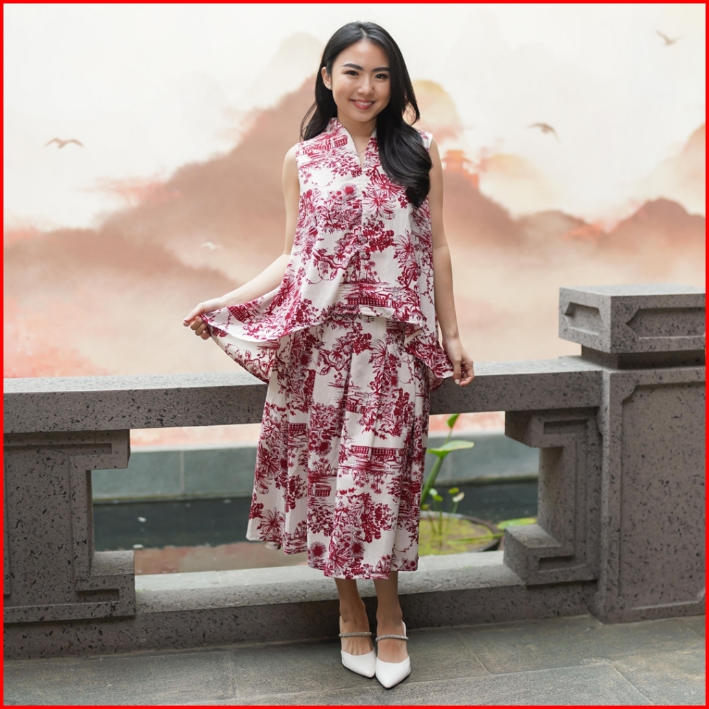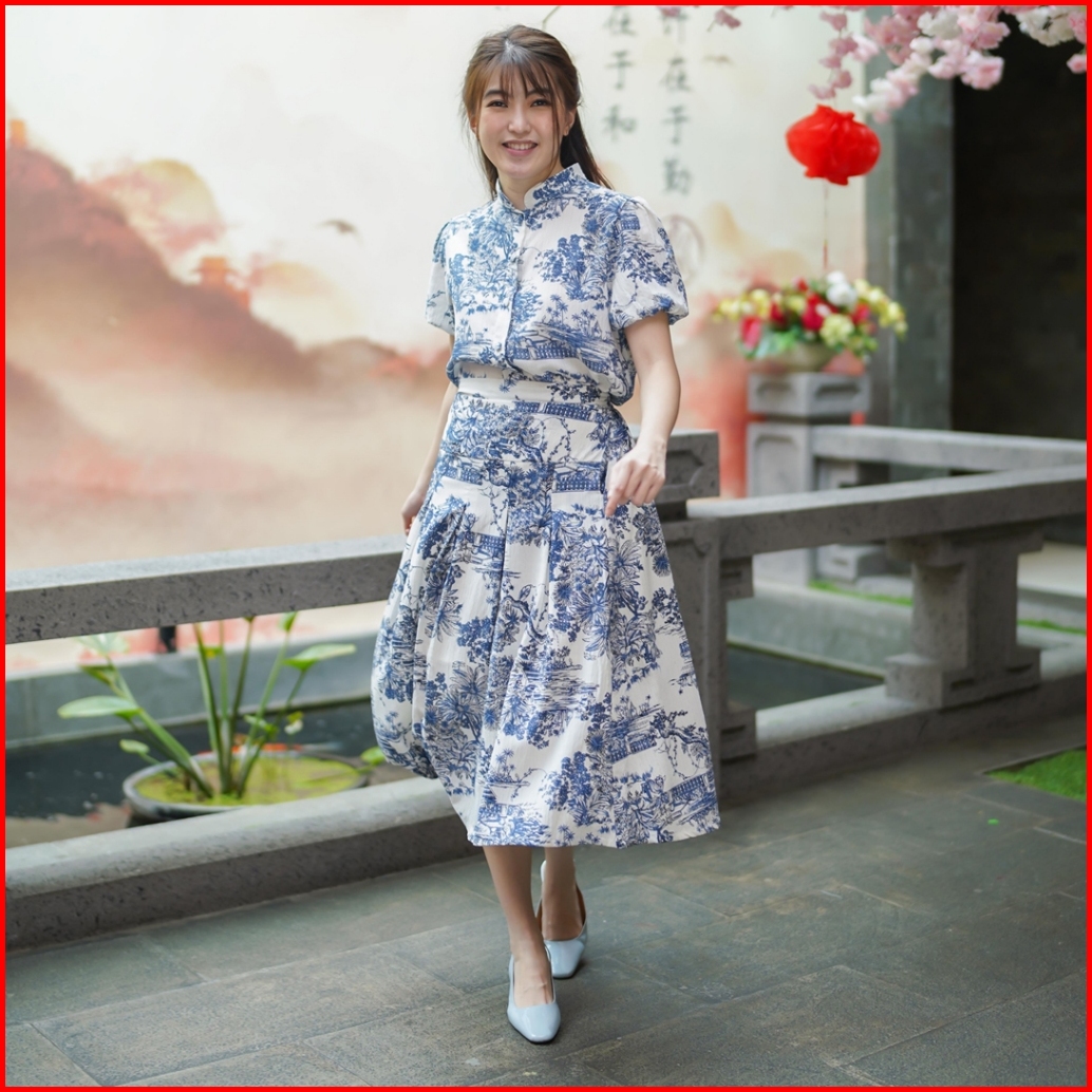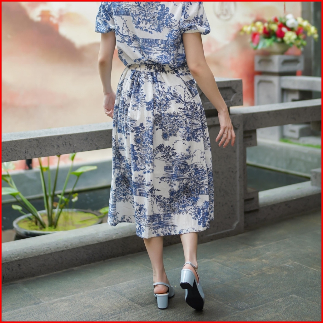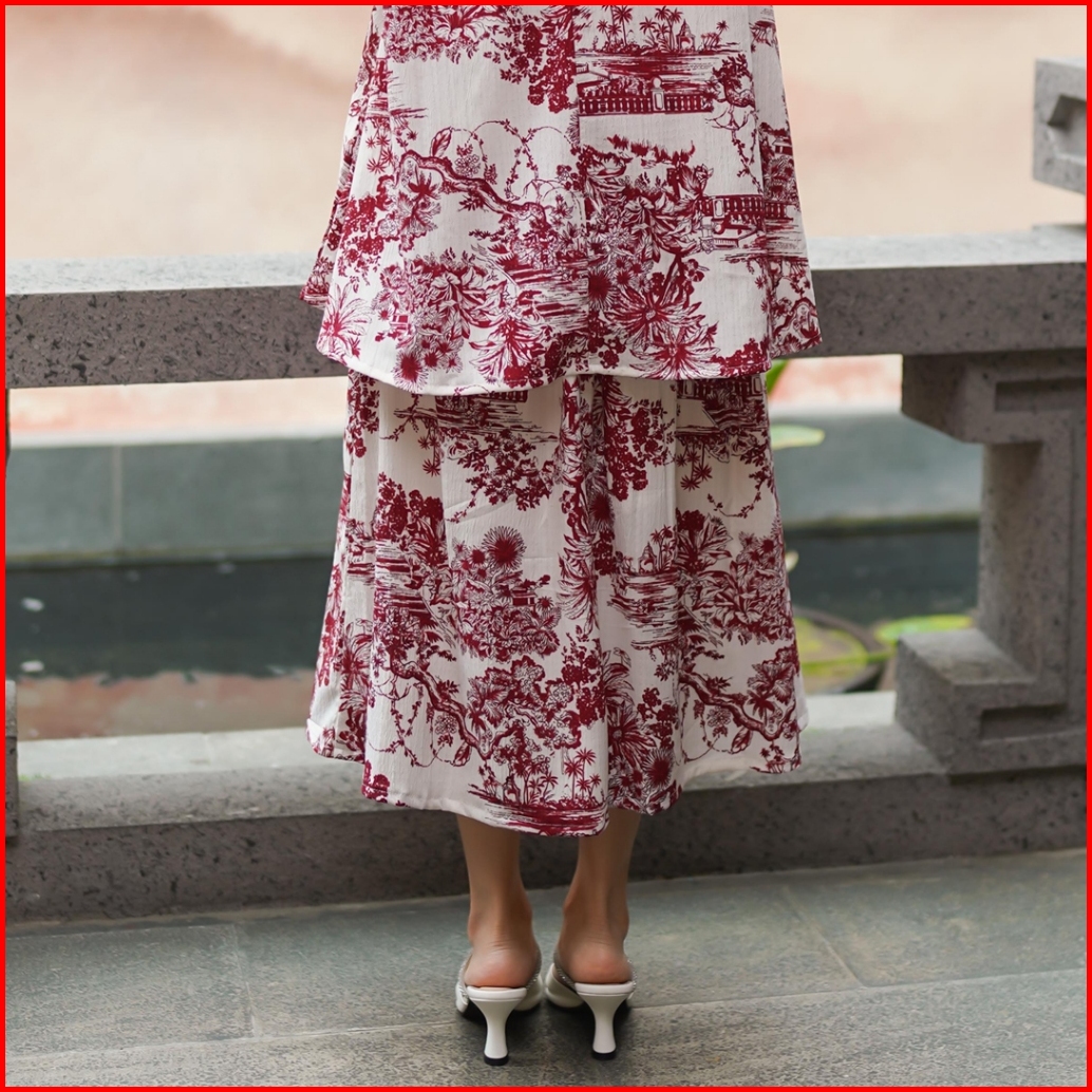Beatrice Clothing Lorei Skirt - Chinoiserie Big Pleats Midi Skirt