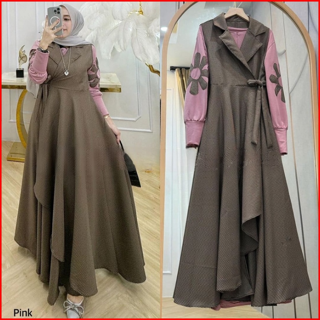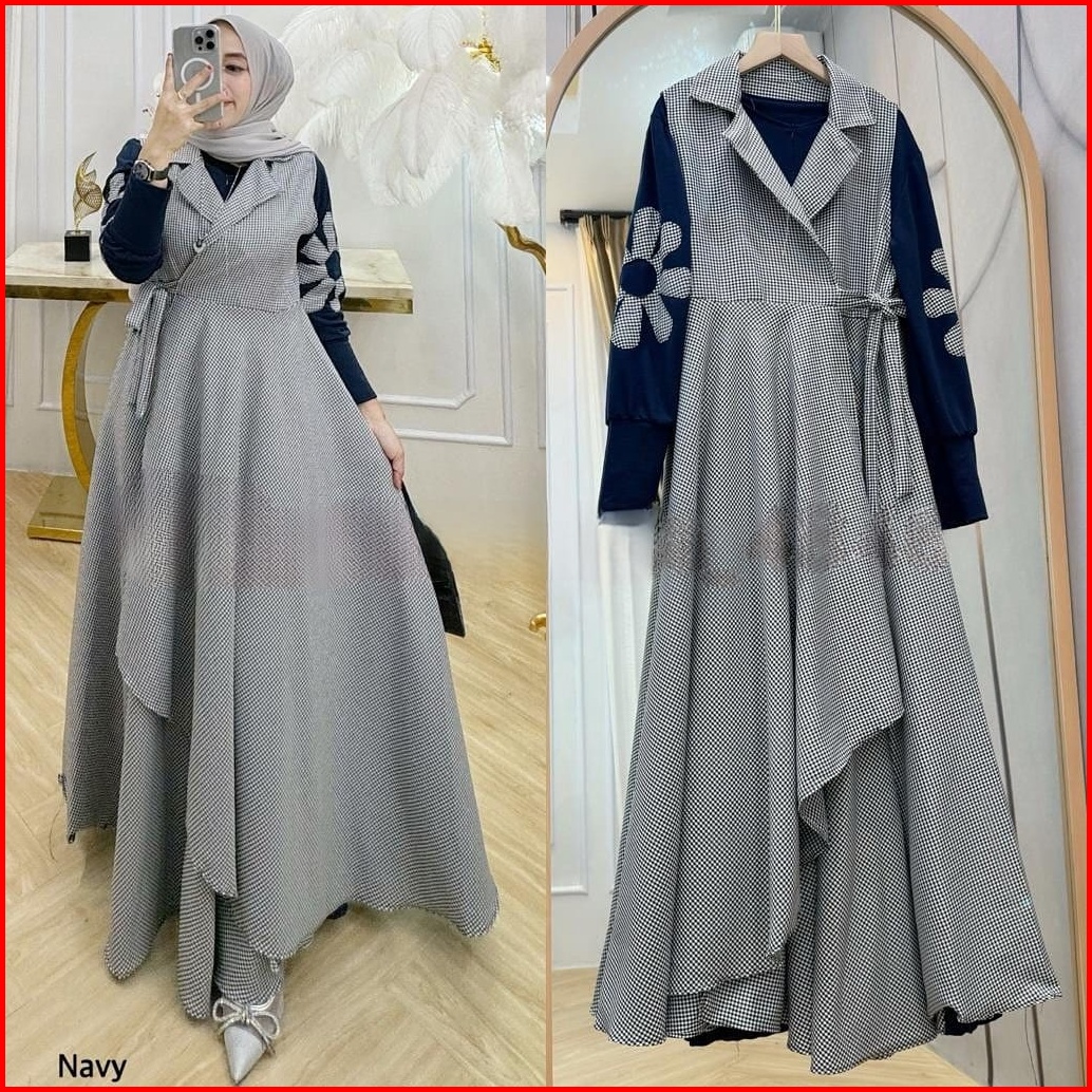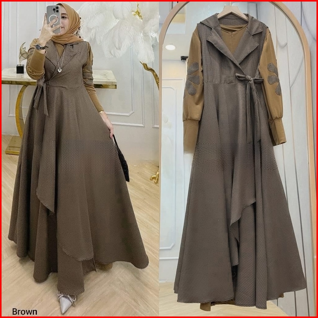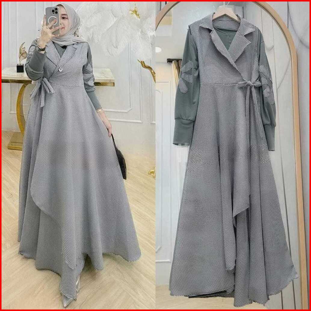 Termurah Di Vallina Outfit - Dilara Maxy Dress Polo Linen Plain Mix Square Cotton Gamis Wanita Muslim Modern Premium M -