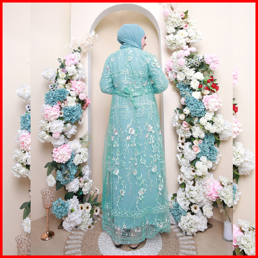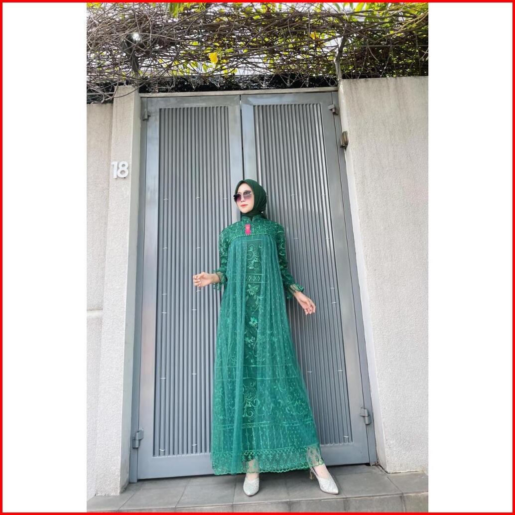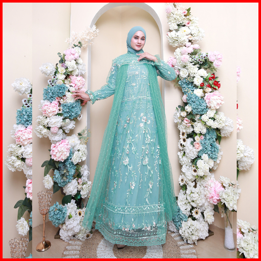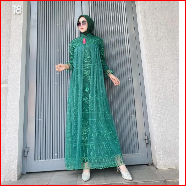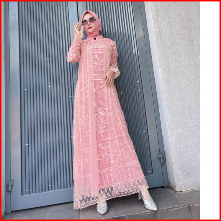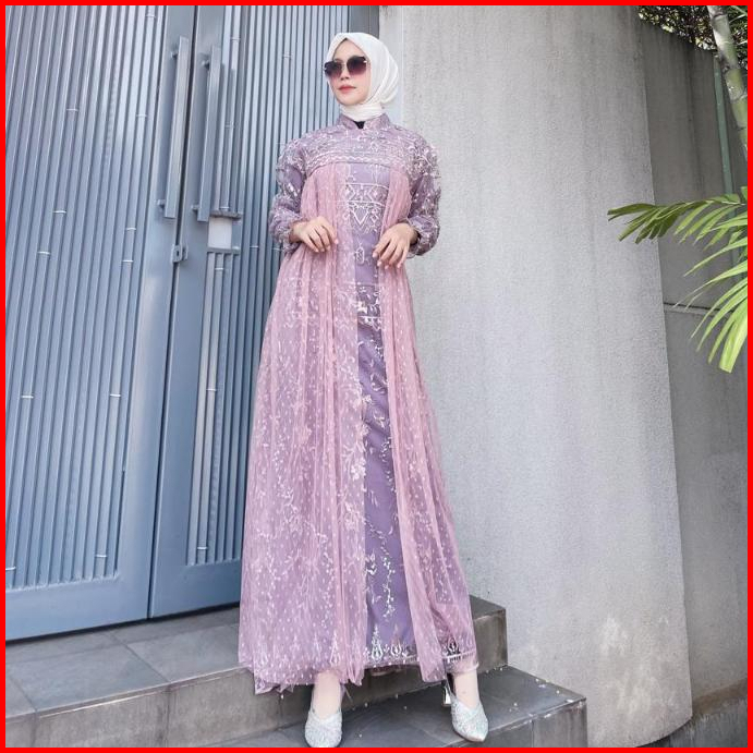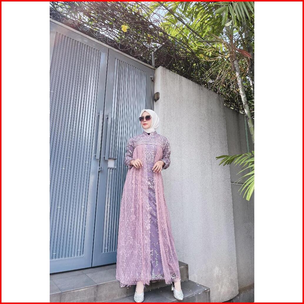 Meera Isyana Brukat Kekinian Dress Mewah Tile Gamis Terbaru Pesta Muslim Wanita Produk Lebaran Premium Maxi Brokat