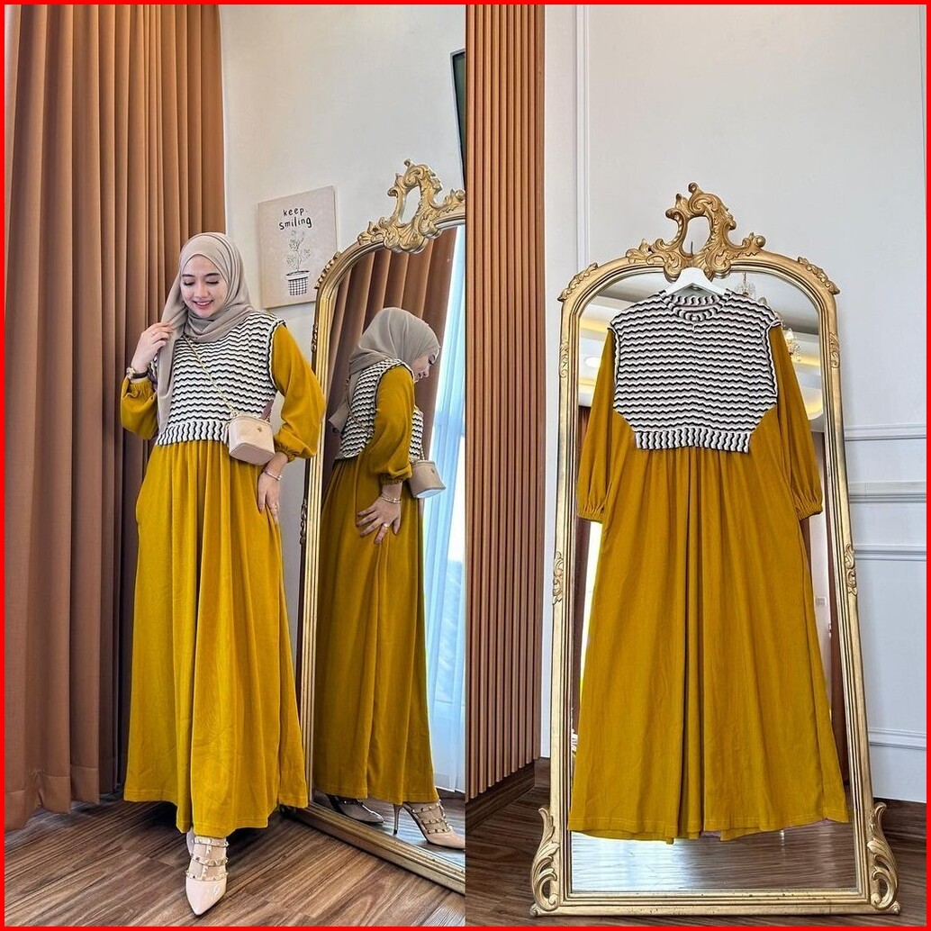 R.a - Clara Dress Muslim Wanita Modern Kekinian Dress Casual Daily Knitt Premium Size Fit To Xl Dress Fashionable