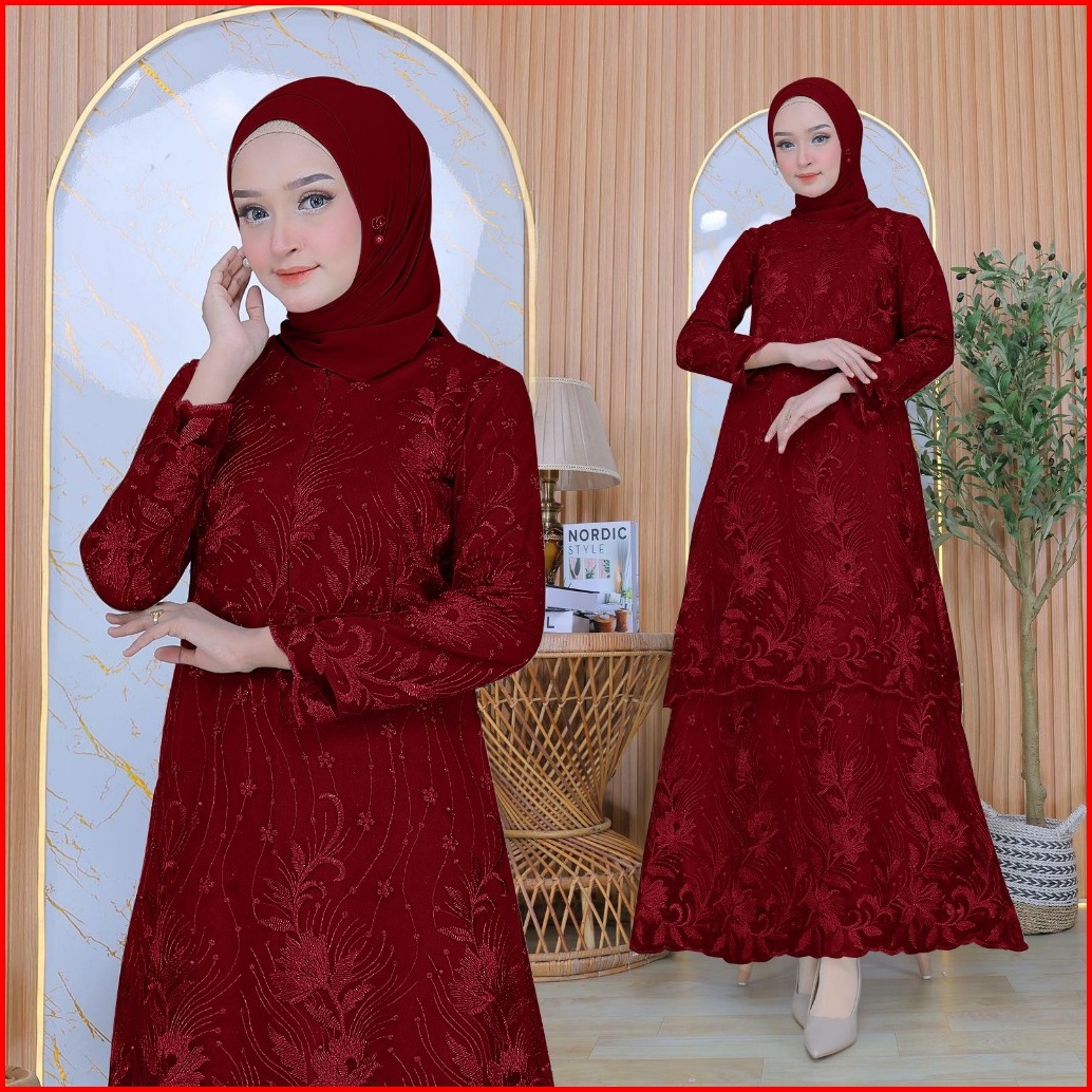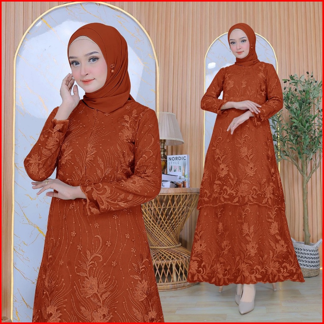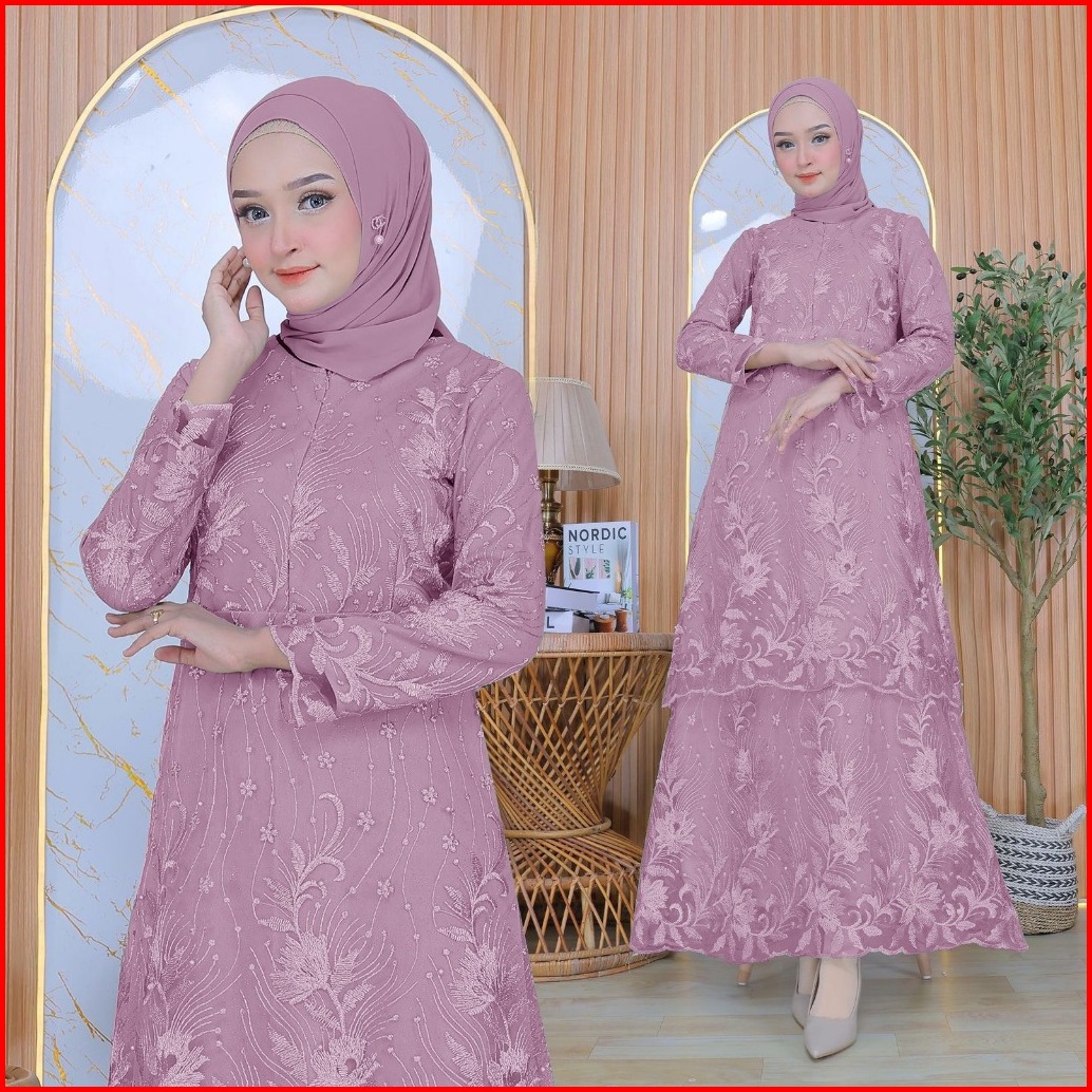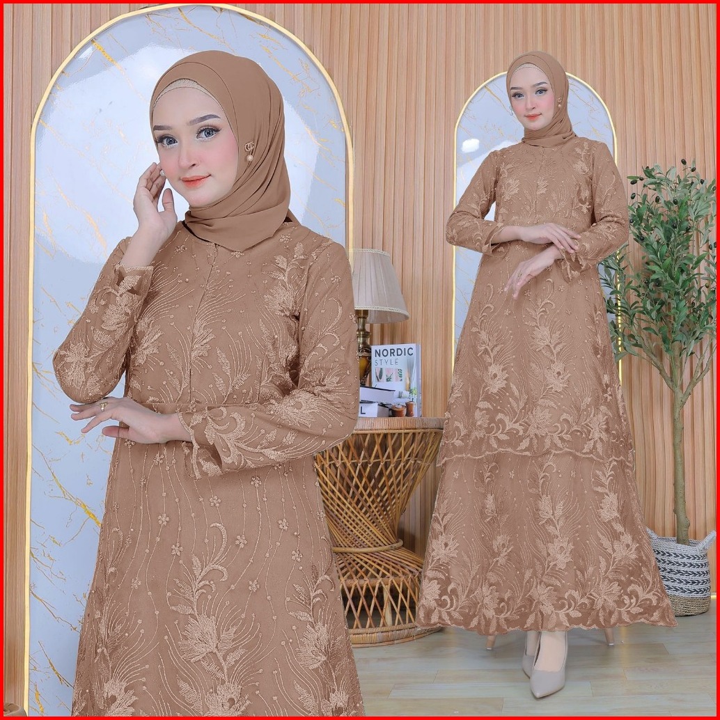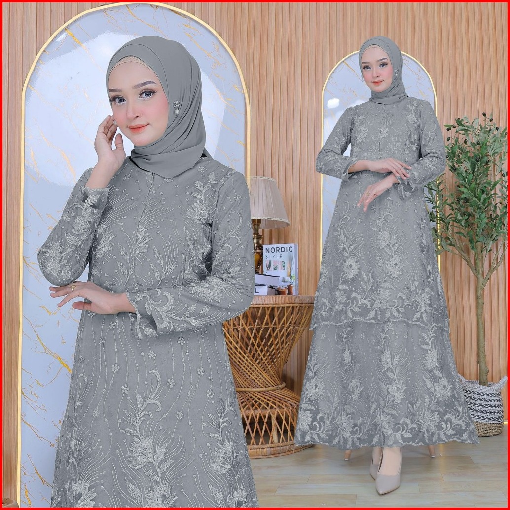 Aurora Boutique Alisia Maxi Dress 3 Ukuran 8 Warna Gamis Panjang Fashion Brukat Mewah Untuk Busana Wanita Muslim Atau No